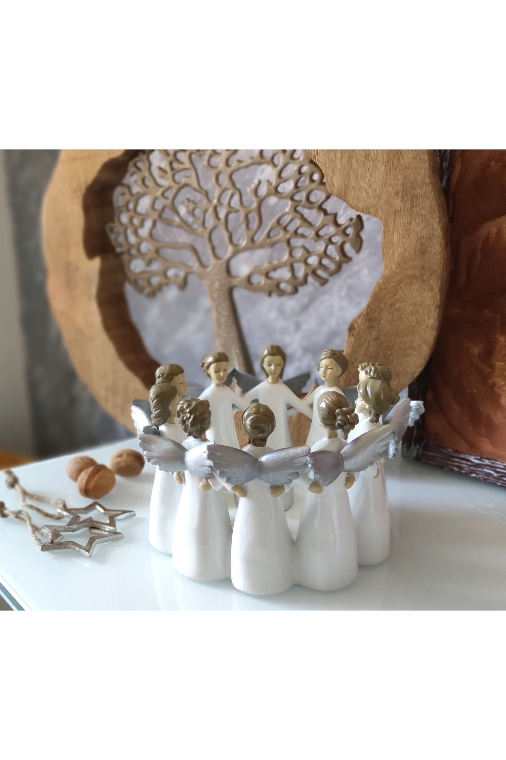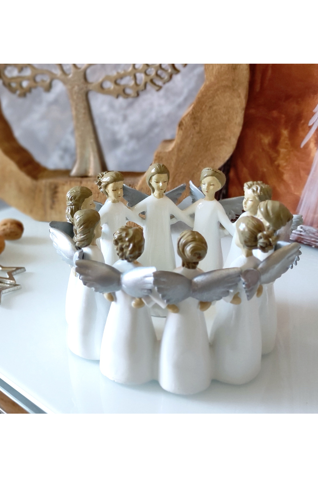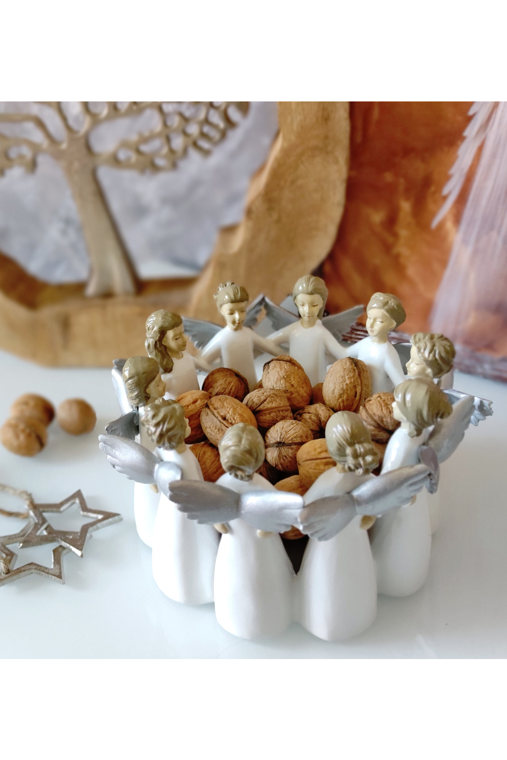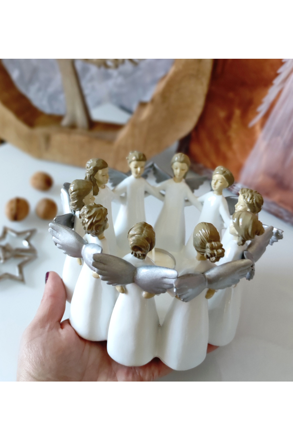 Ručně vyrobená miska/svícen/věnec 8mi krásných andělů. Tento věnec je vyrobený ve Švédsku a každý jeden z deseti andělů je úplně jiný s jiným účesem a jiným obličejem.
