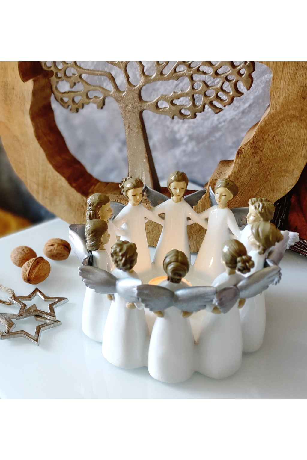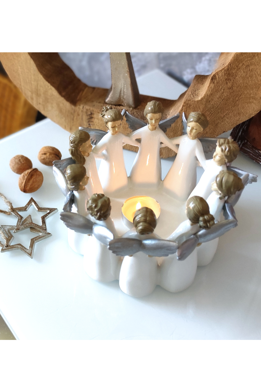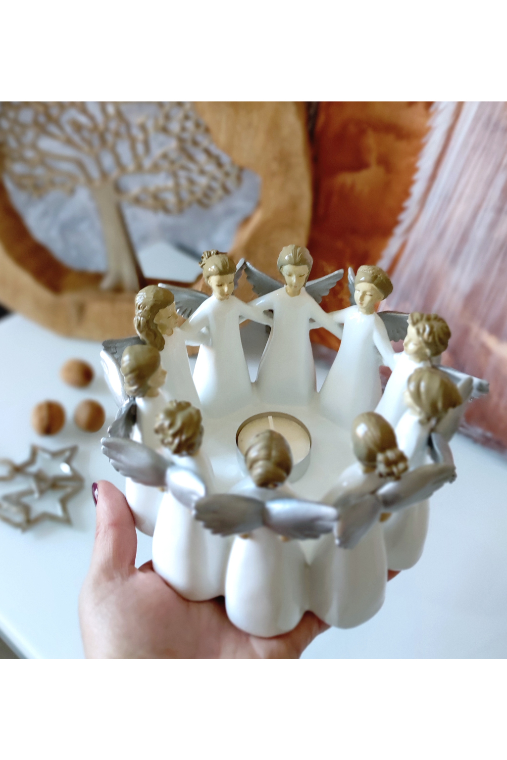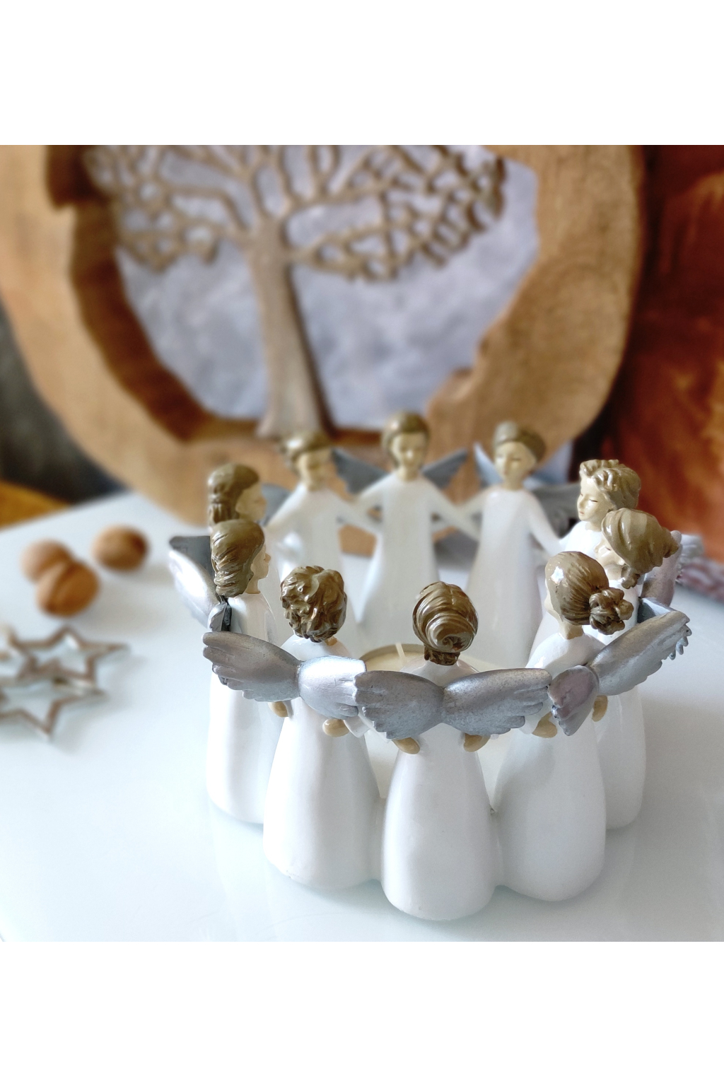 Ručně vyrobená miska/svícen/věnec 8mi krásných andělů. Tento věnec je vyrobený ve Švédsku a každý jeden z deseti andělů je úplně jiný s jiným účesem a jiným obličejem.