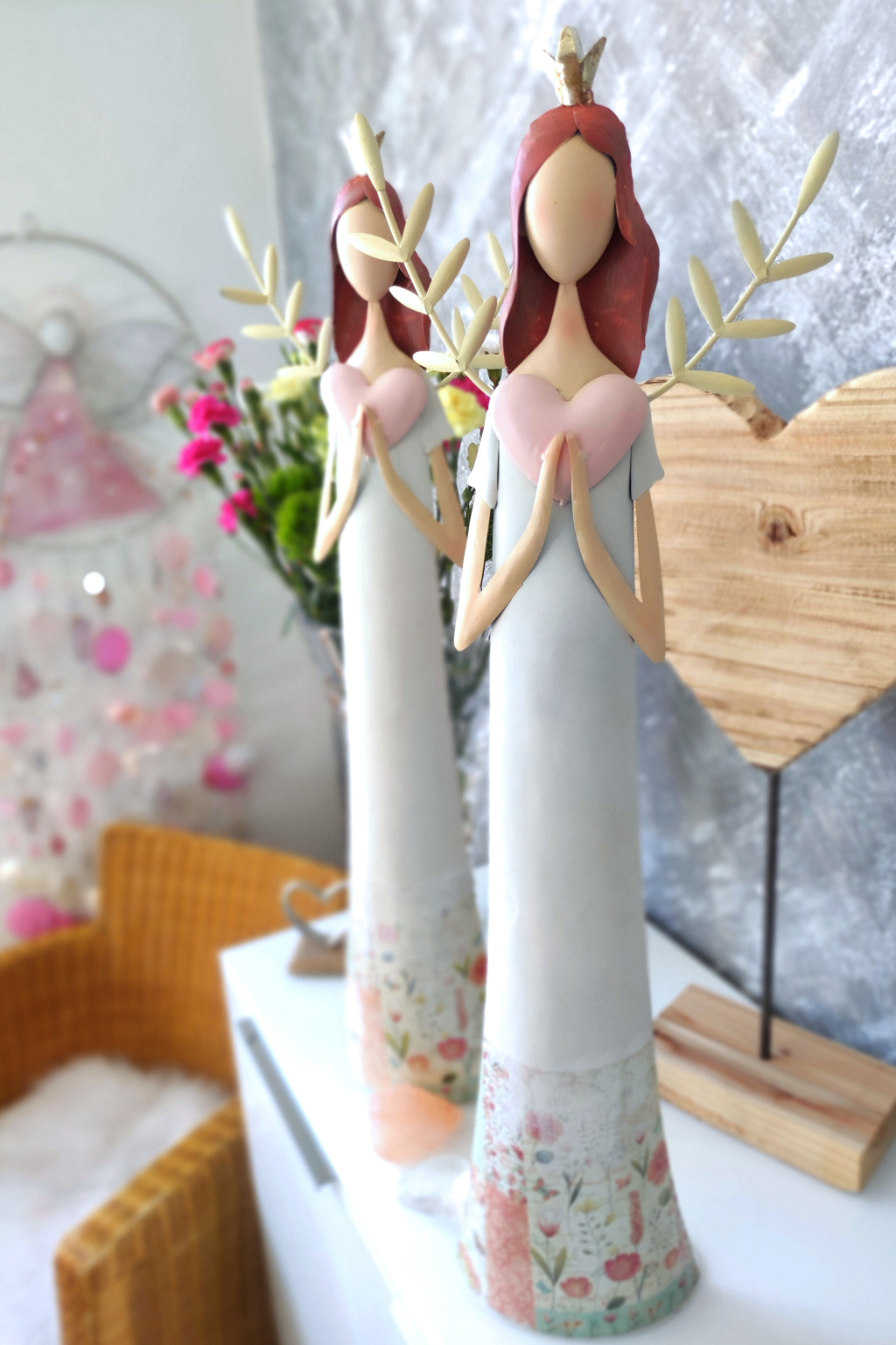 jsou od pradávna vnímáni jako symbol ochrany, naděje a duchovního vedení. Připomínají přítomnost klidu, bezpečí a dobré energie v našem životě. Andělská dekorace v domově může symbolizovat ochranu, harmonii a laskavost, která nás provází každodenním životem.