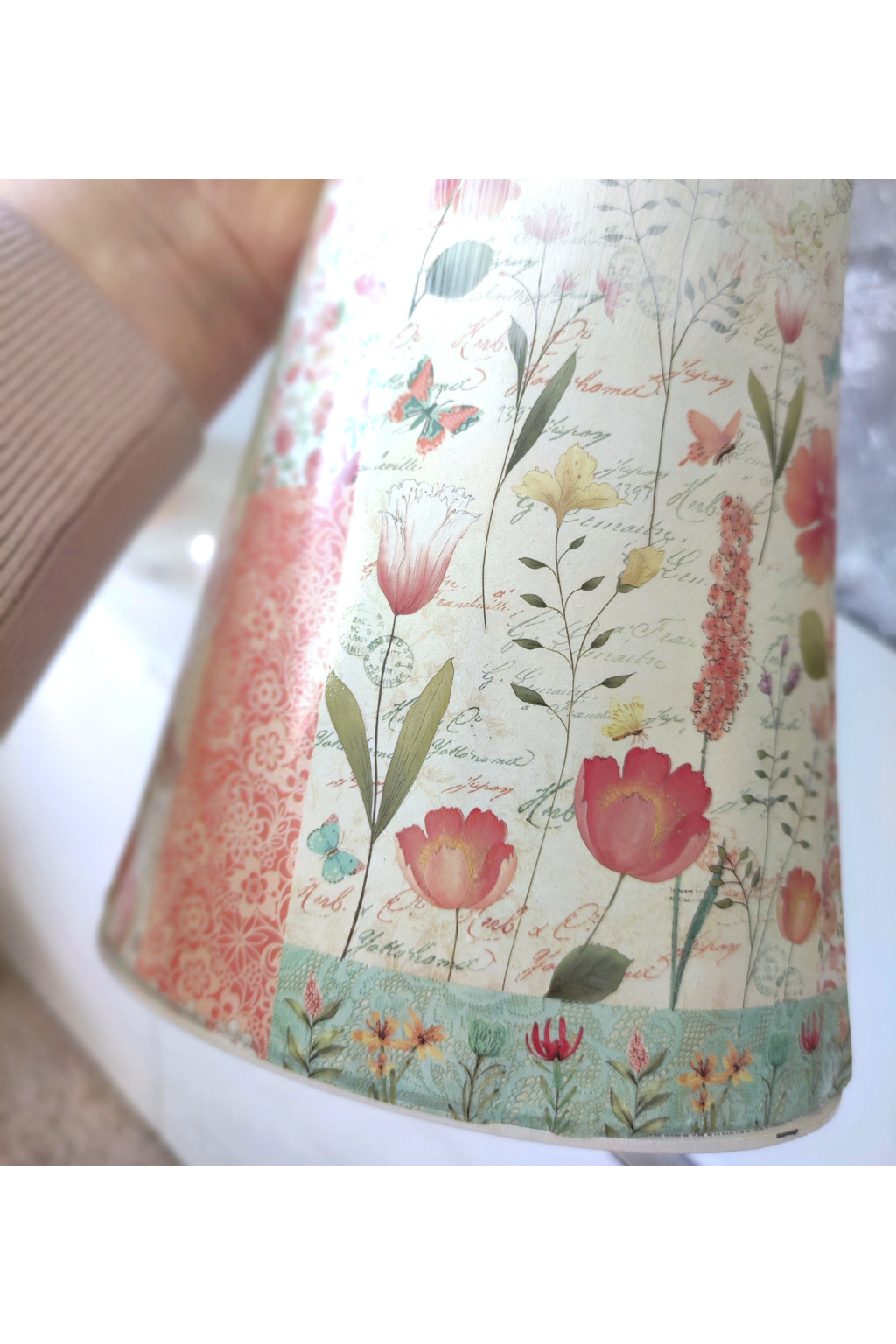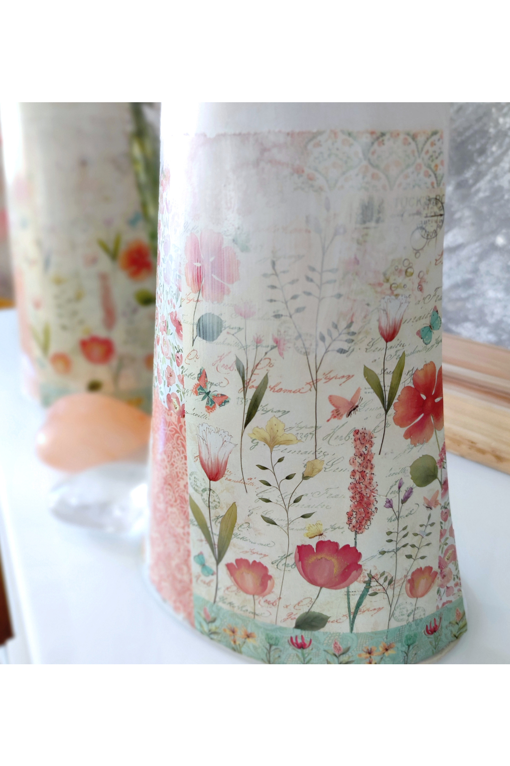 Jeho světlé šaty zdobí jemný květinový motiv připomínající rozkvetlou jarní louku. Zlatavé větvičky po stranách působí jako lehká křídla a dodávají celé dekoraci vzdušnost a eleganci. Díky své výšce 72 cm se anděl stává nepřehlédnutelnou dekorací, která krásně vynikne na komodě, polici nebo jako součást jarní výzdoby interiéru.