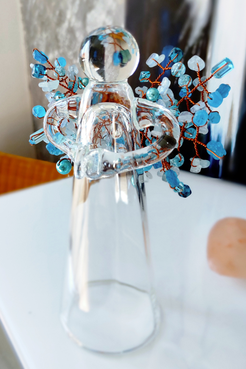 Anděl skleněný - Křišťálový strážce s chalcedonem 20cm