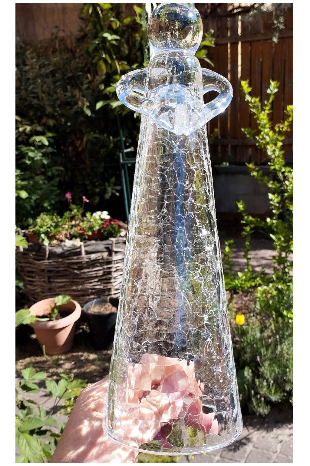 Tento skleněný anděl je více než jen dekorace; je to symbol osvícení, transformace a umělecké hodnoty, který zkrášlí každý prostor a naplní ho pozitivní energií.