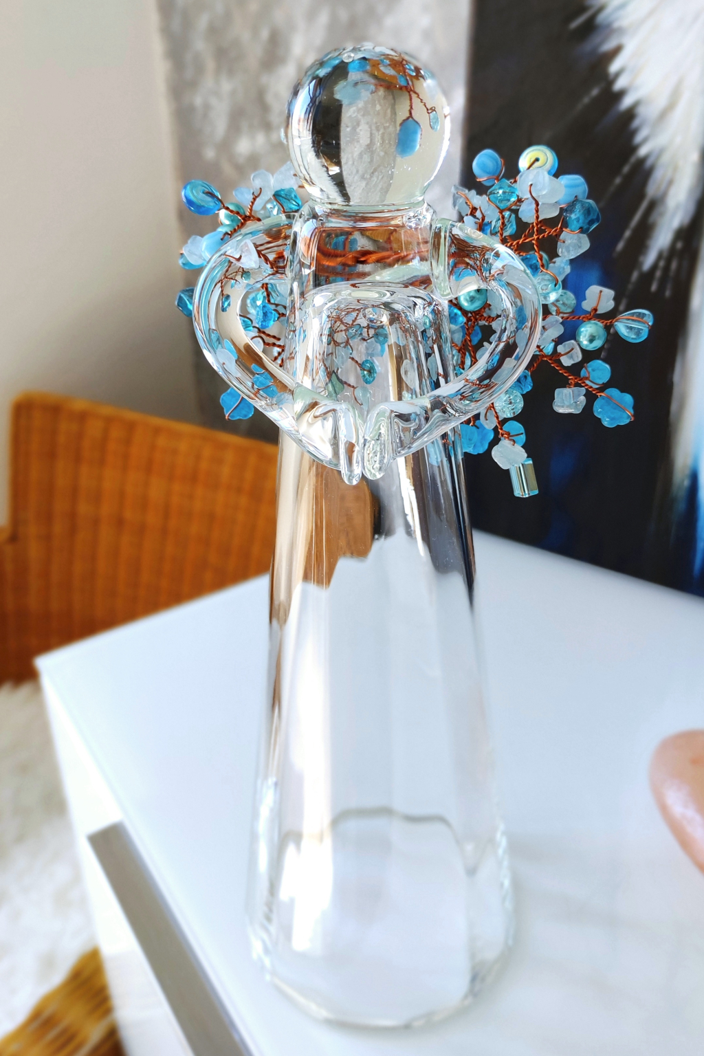 Každý detail tohoto anděla vyzařuje eleganci a luxus, přinášející do vašeho domova harmonii a vyváženost. Průzračná struktura skla, která dokáže lámat světlo do nádherných barevných odlesků, symbolizuje spojení mezi fyzickým a duchovním světem. Krystalické sklo, díky své trvanlivosti a síle, také představuje odolnost a trvanlivost krásy, kterou přináší.