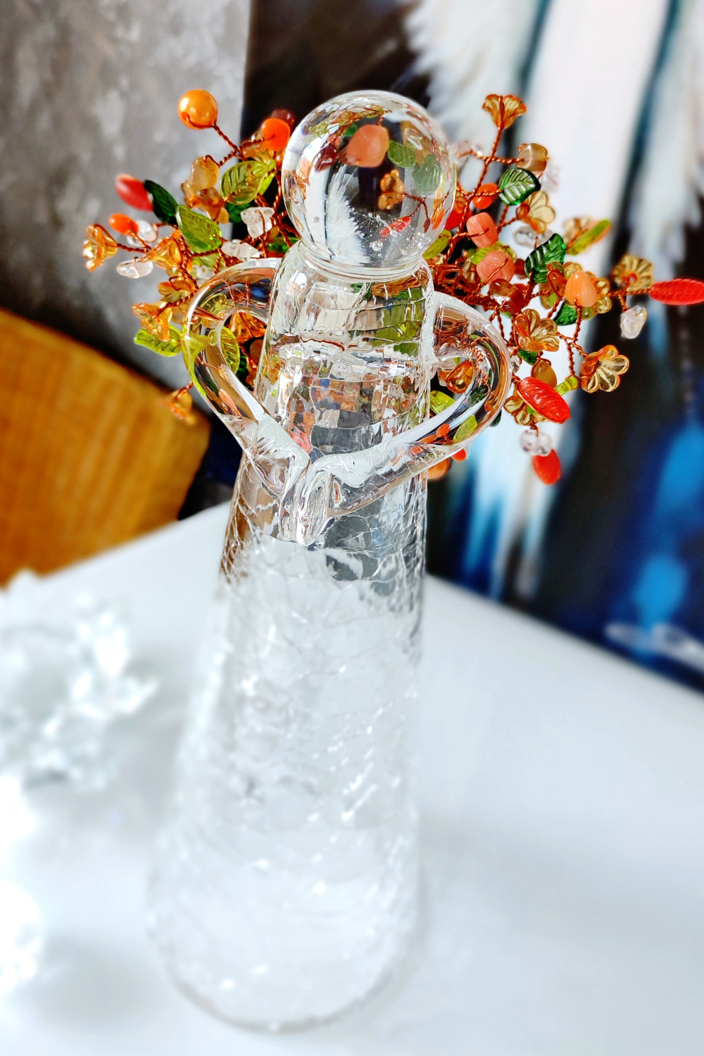 Tento skleněný anděl je více než jen dekorace; je to symbol osvícení, transformace a umělecké hodnoty, který zkrášlí každý prostor a naplní ho pozitivní energií.