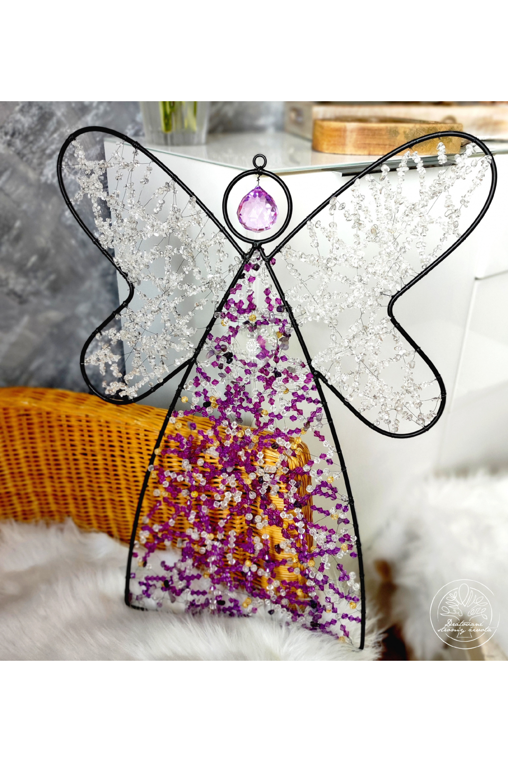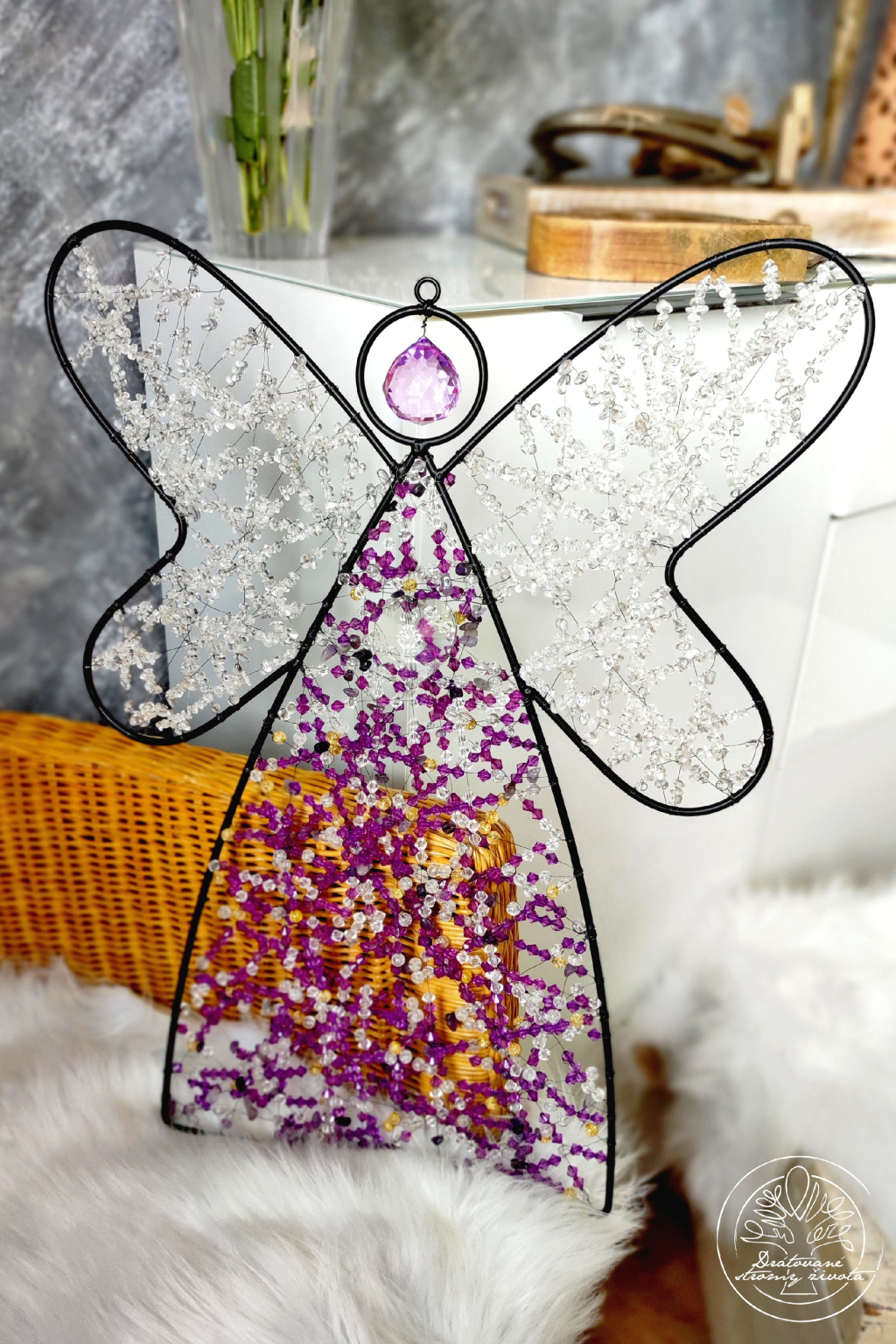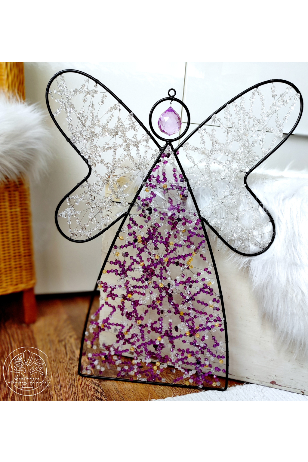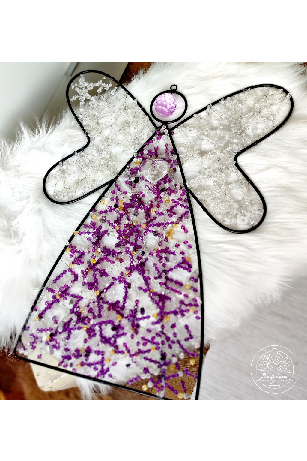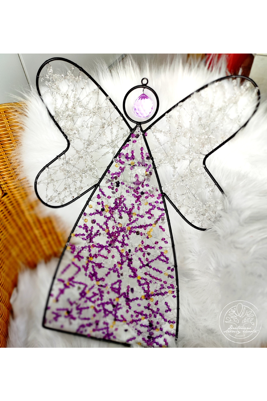 V andílkovi jsou použity polodrahokamy Křišťálu, ze kterého jsou vypleteny celá křídla a Ametystu, který je přidám do sukýnky andílka.