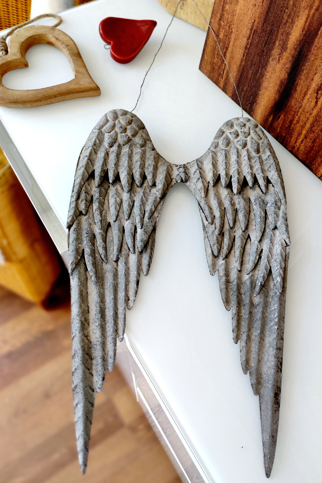 Originální Andělská křídla k zavěšení. Křídla jsou z kovu, vyvedená ve stylu Vintage. K zavěšení je velké drátěné ouško na konci s milou kličkou.