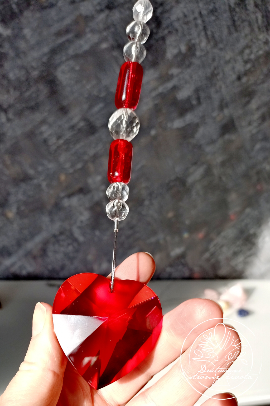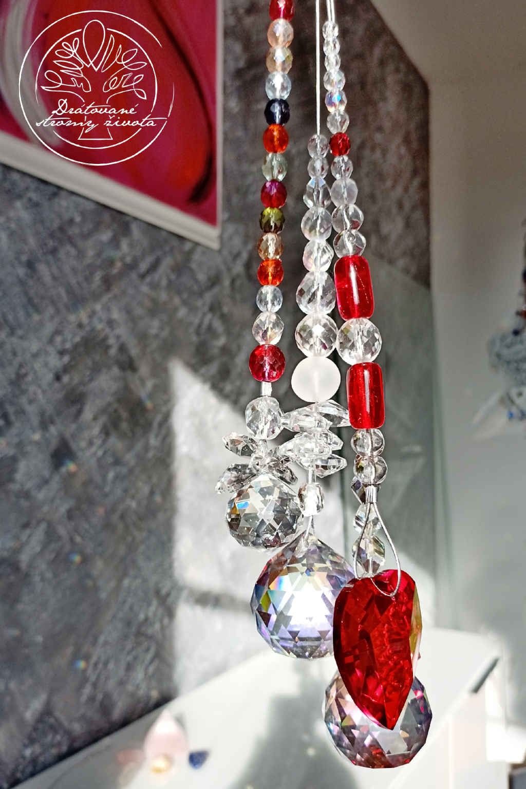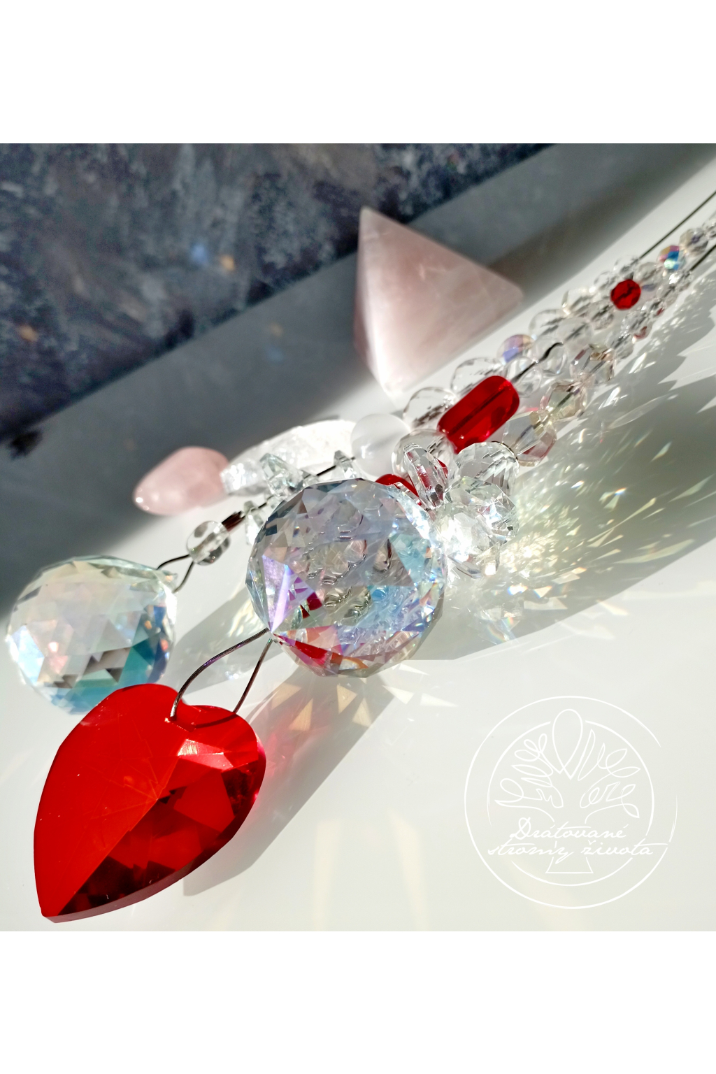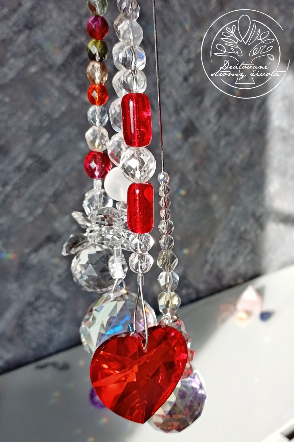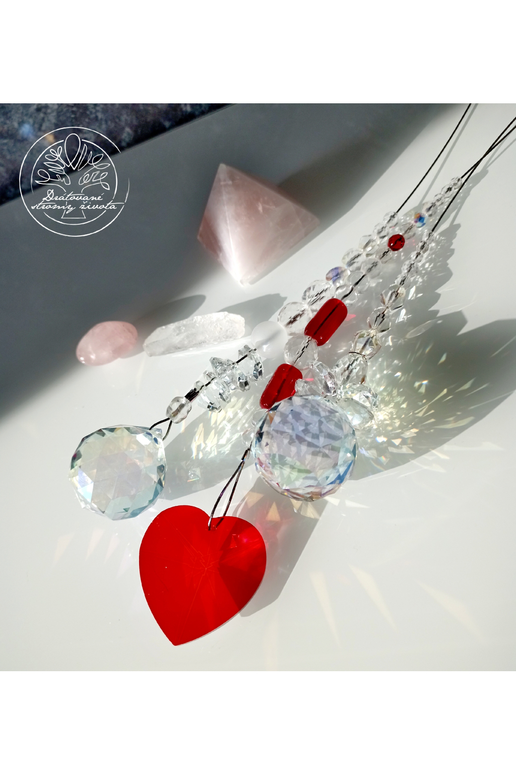 Sada tří kusů broušených světloher - krišťálová Laskavost 4cm, Andělské pohlazení 4cm a červené broušené srdce.
