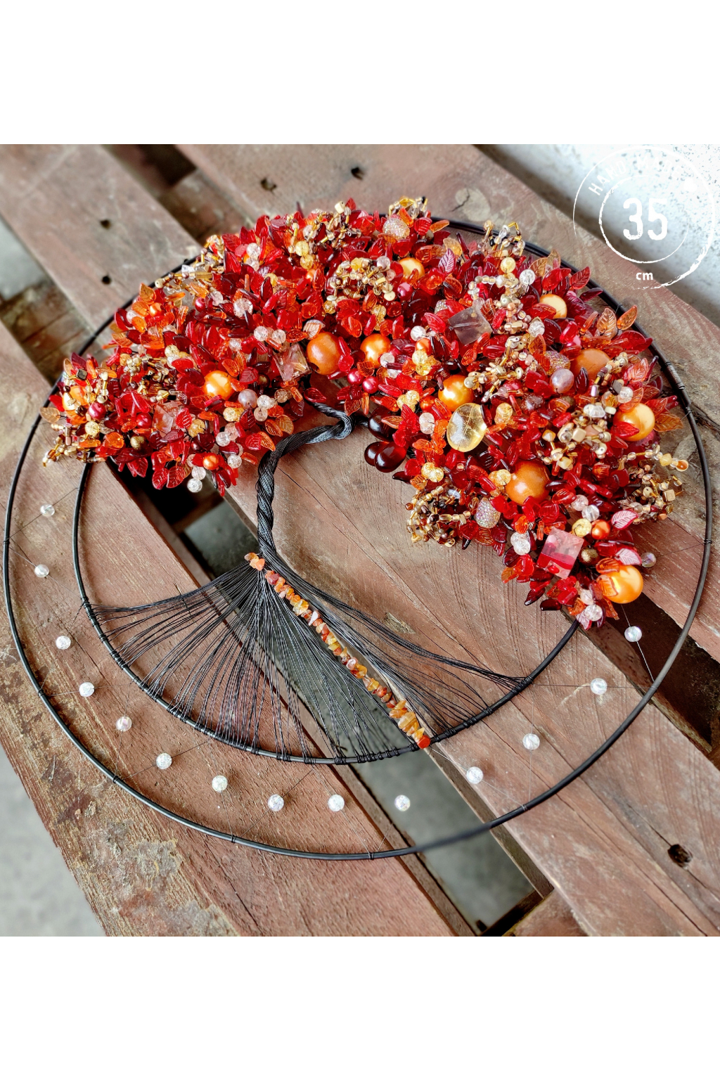 Strom života s názvem "Radost a chuť do života 35cm" je upleten v barvách podzimního listí, v barvách podzimu, období roku, které je takovým velkým zúčtováním toho, jak jsme celý rok hospodařili, takové plody nám příroda přinese, lze takovou parafrází navázat i na náš život. Strom nám přináší dary našeho vlastního života, aneb jak žiješ, tak sklízíš.
