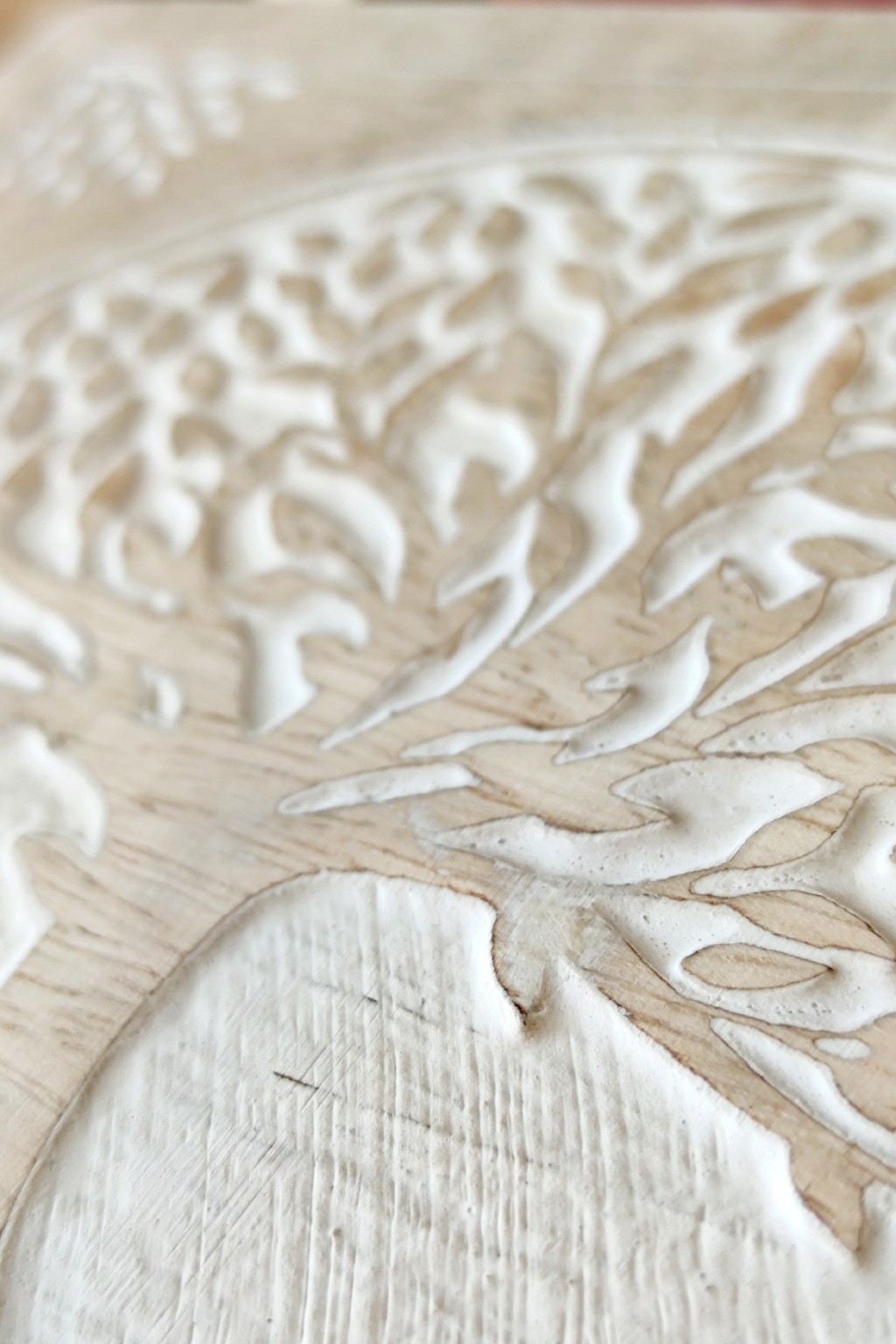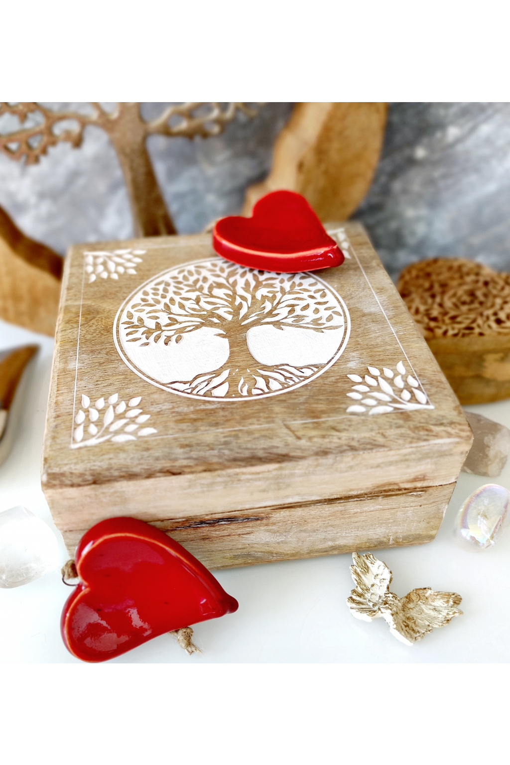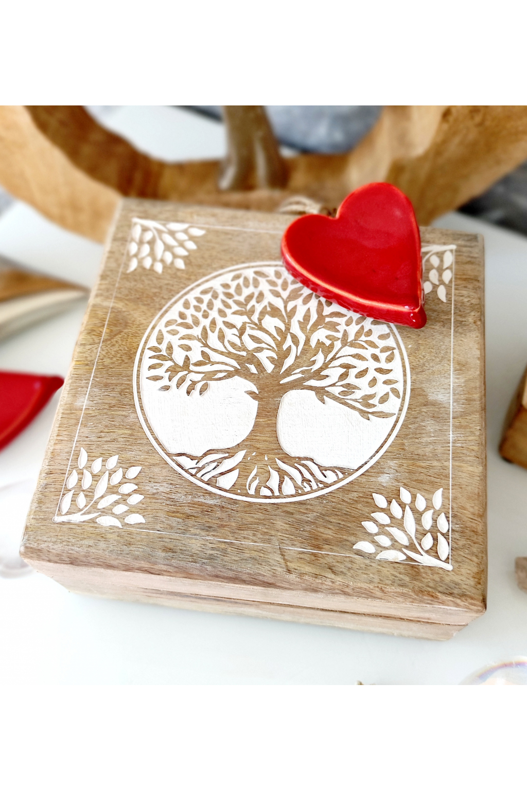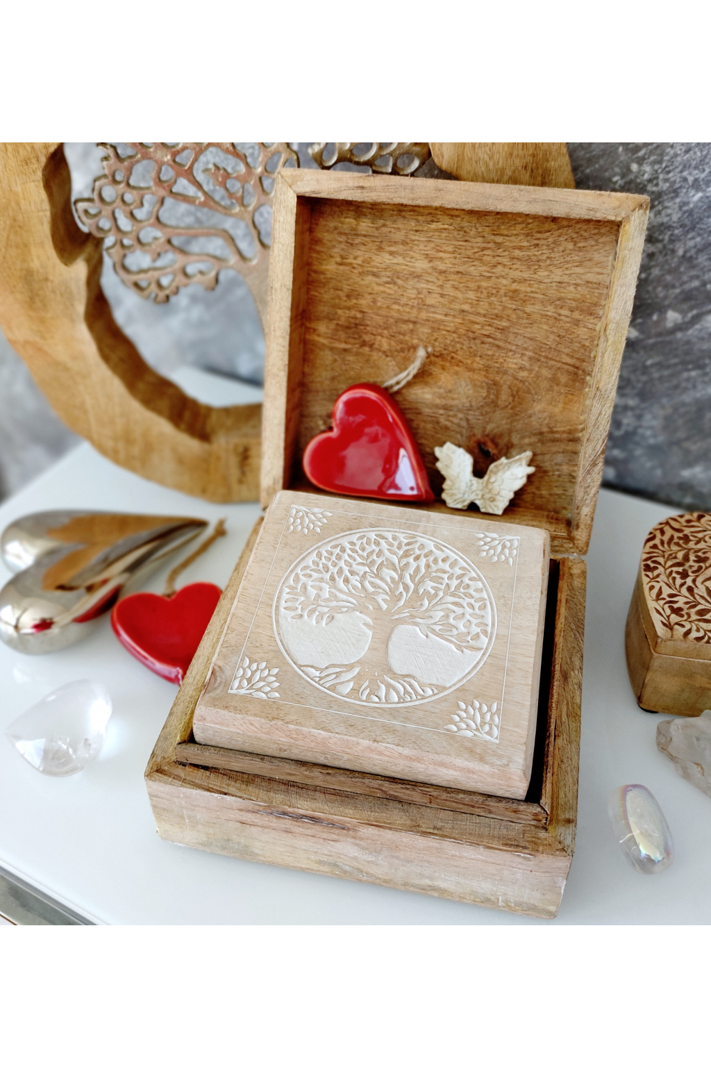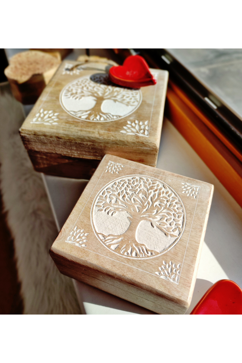 Jedinečné a luxusní dřevěná krabička z Mangového dřeva s motivem stromu života na horní straně. Motiv stromu je vyřezávaný reliéf a vystupuje z povrchu krabičky, je vymalován pak bílou barvou. Vysoká kvalita i preciznost motivu.