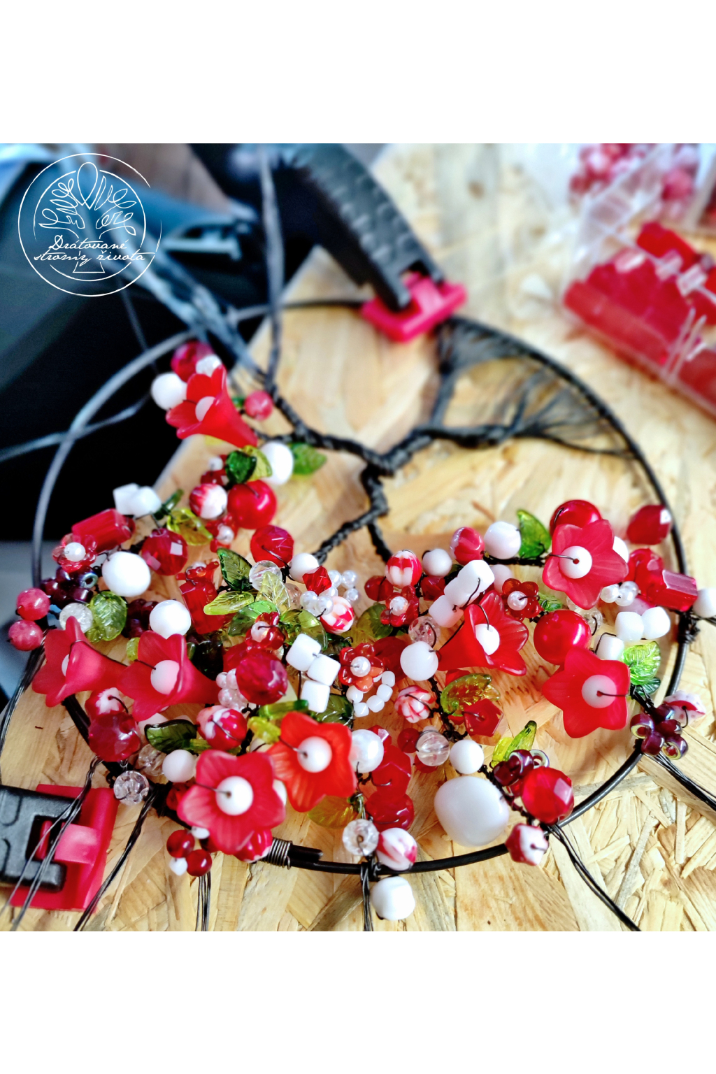 - Veškerý materiál na výrobu stromu života - kovová kružnice, drátky