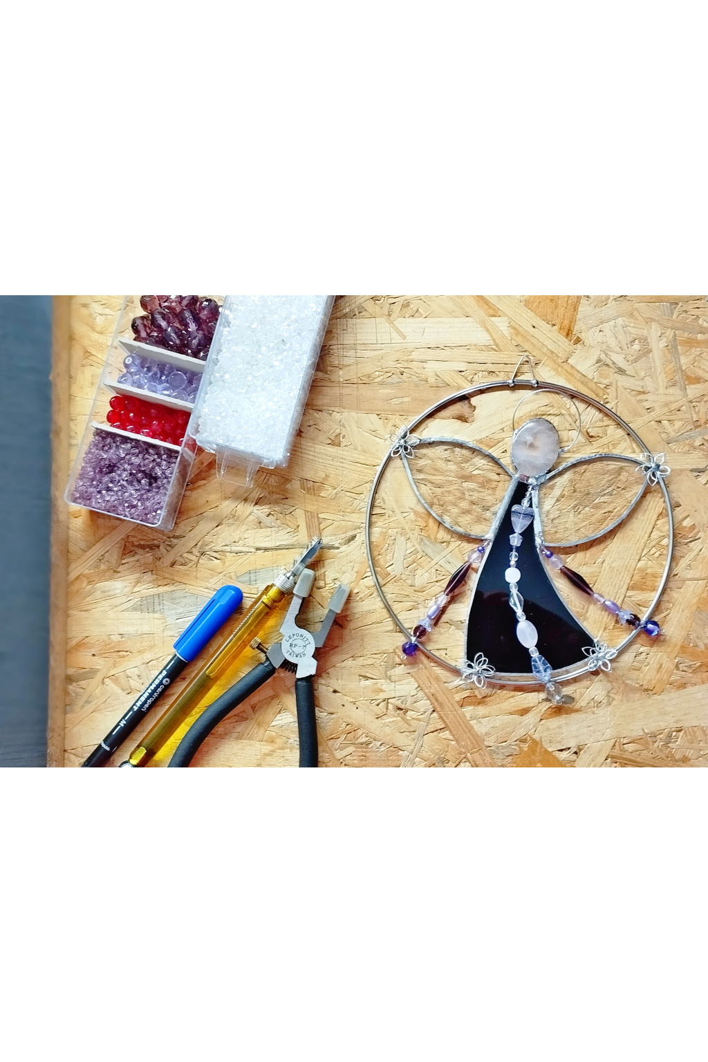 - Veškerý materiál na výrobu Anděla Tiffany - kovová kružnice, sklo, korálky, drát