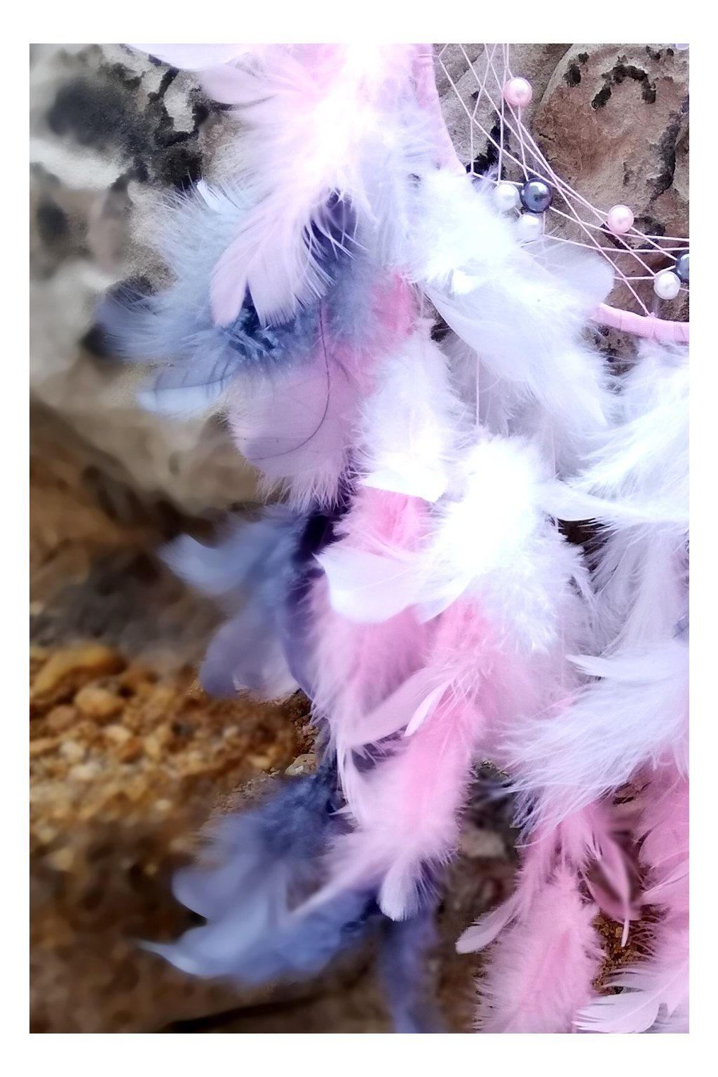 Lapač je vyveden v růžovo šedých odstínech, jež je zaměřen na podporu našich citů a přivolání lásky k sobě, umístěný doma působí velmi harmonicky a dokáže zklidňovat a urovnávat spory, hádky a navozuje harmonii, klid a důvěru.
