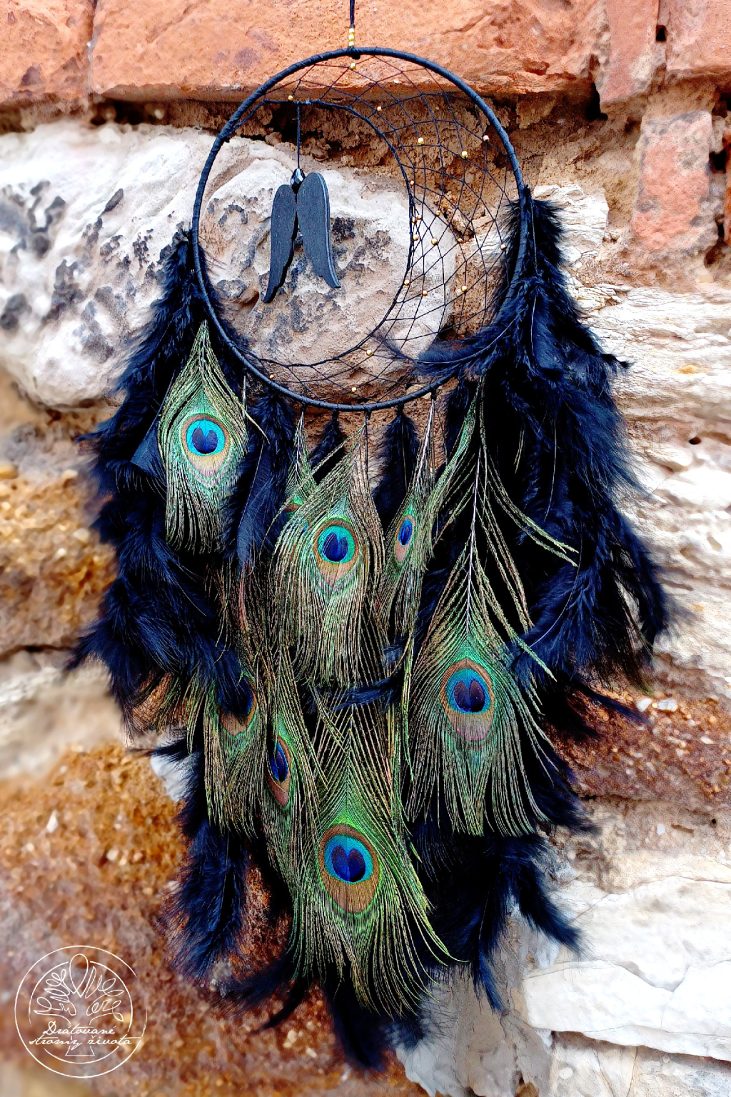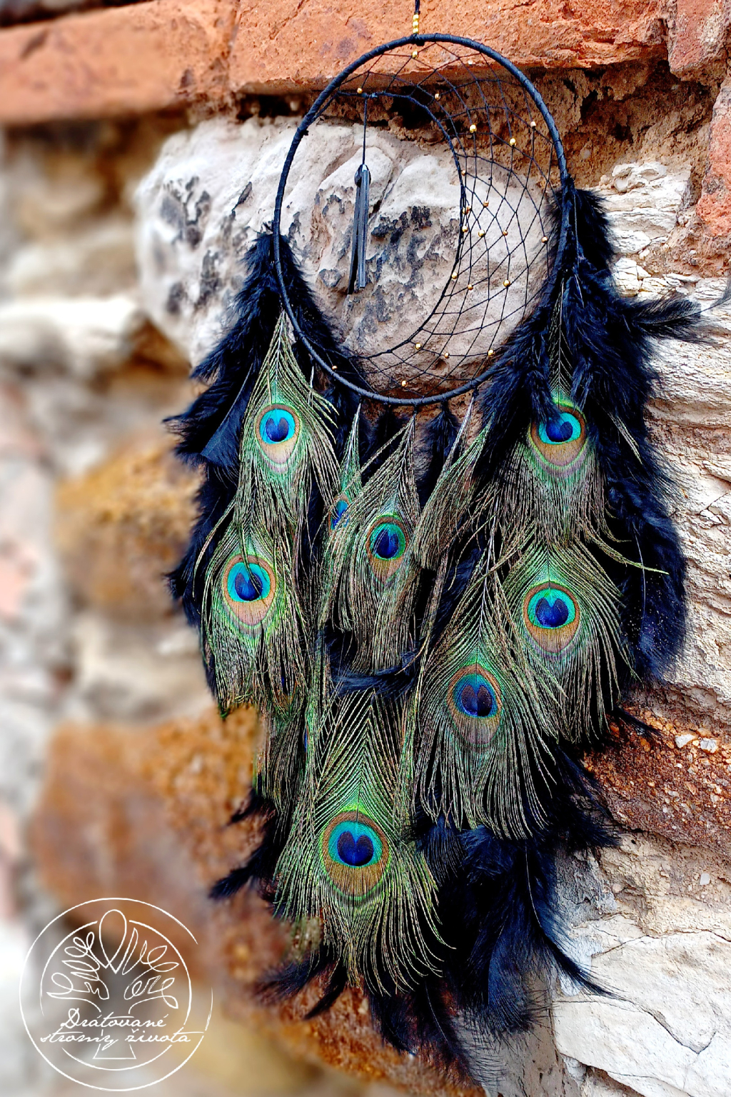Největší dominantou lapače je peří PÁVA, které jsou symbolem vyššího smyslu - tento smysl je znázorněn právě symbolikou oka ukrytého v pestrém peří. Učí člověka spravedlnosti, aby nepodléhat pýše a egu, našel v srdci rovnováhu. Vládci některých kultur nosili čelenky z pavích per a paví peří zdobilo i jejich trůny, aby rozhodovali moudře a spravedlivě.