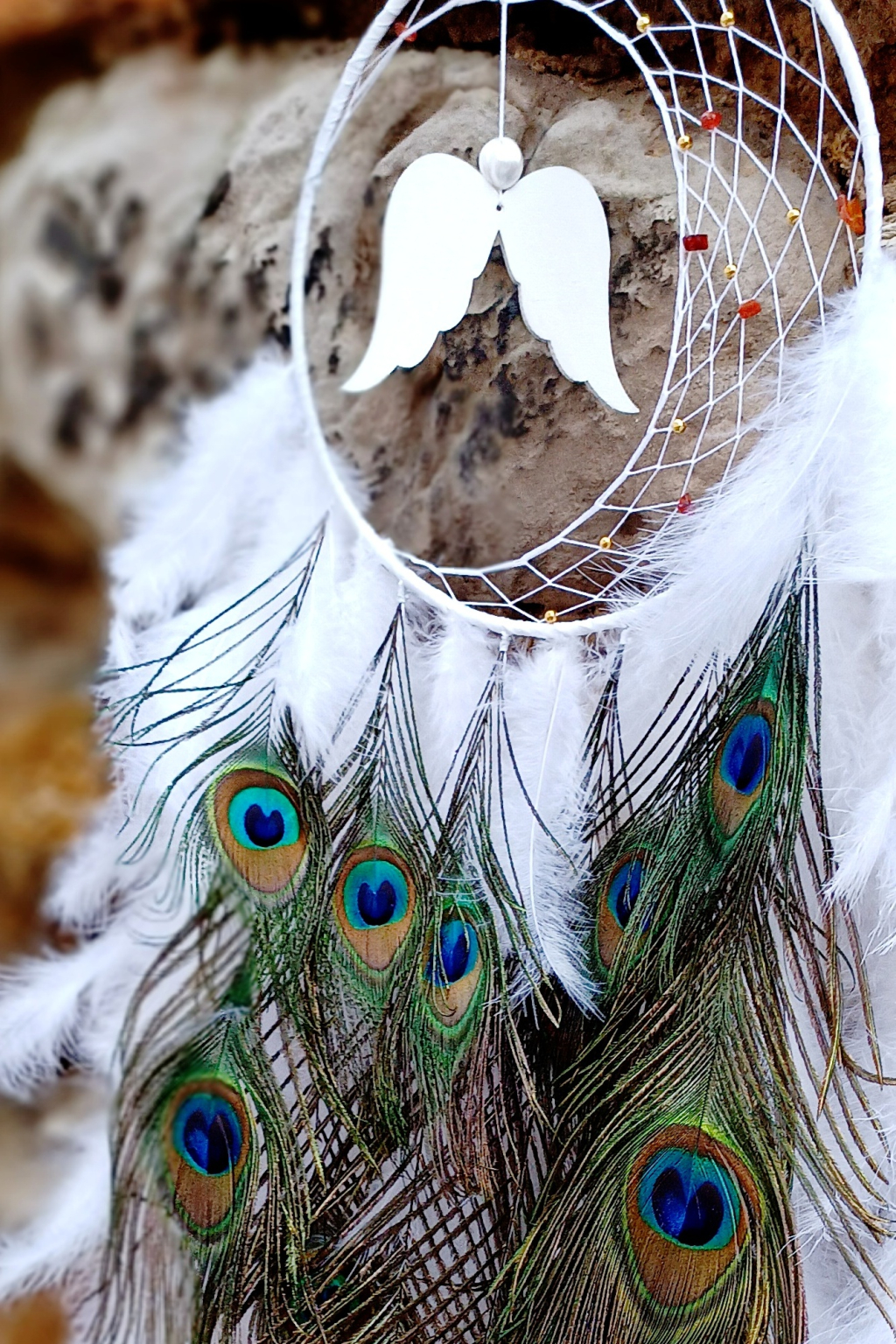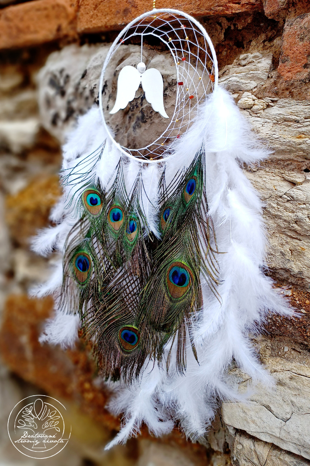 Největší dominantou lapače je peří PÁVA, které jsou symbolem vyššího smyslu - tento smysl je znázorněn právě symbolikou oka ukrytého v pestrém peří. Učí člověka spravedlnosti, aby nepodléhat pýše a egu, našel v srdci rovnováhu. Vládci některých kultur nosili čelenky z pavích per a paví peří zdobilo i jejich trůny, aby rozhodovali moudře a spravedlivě.