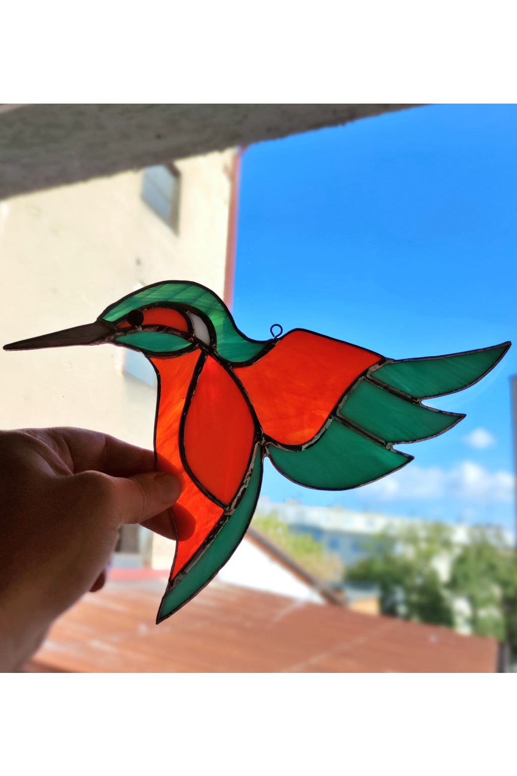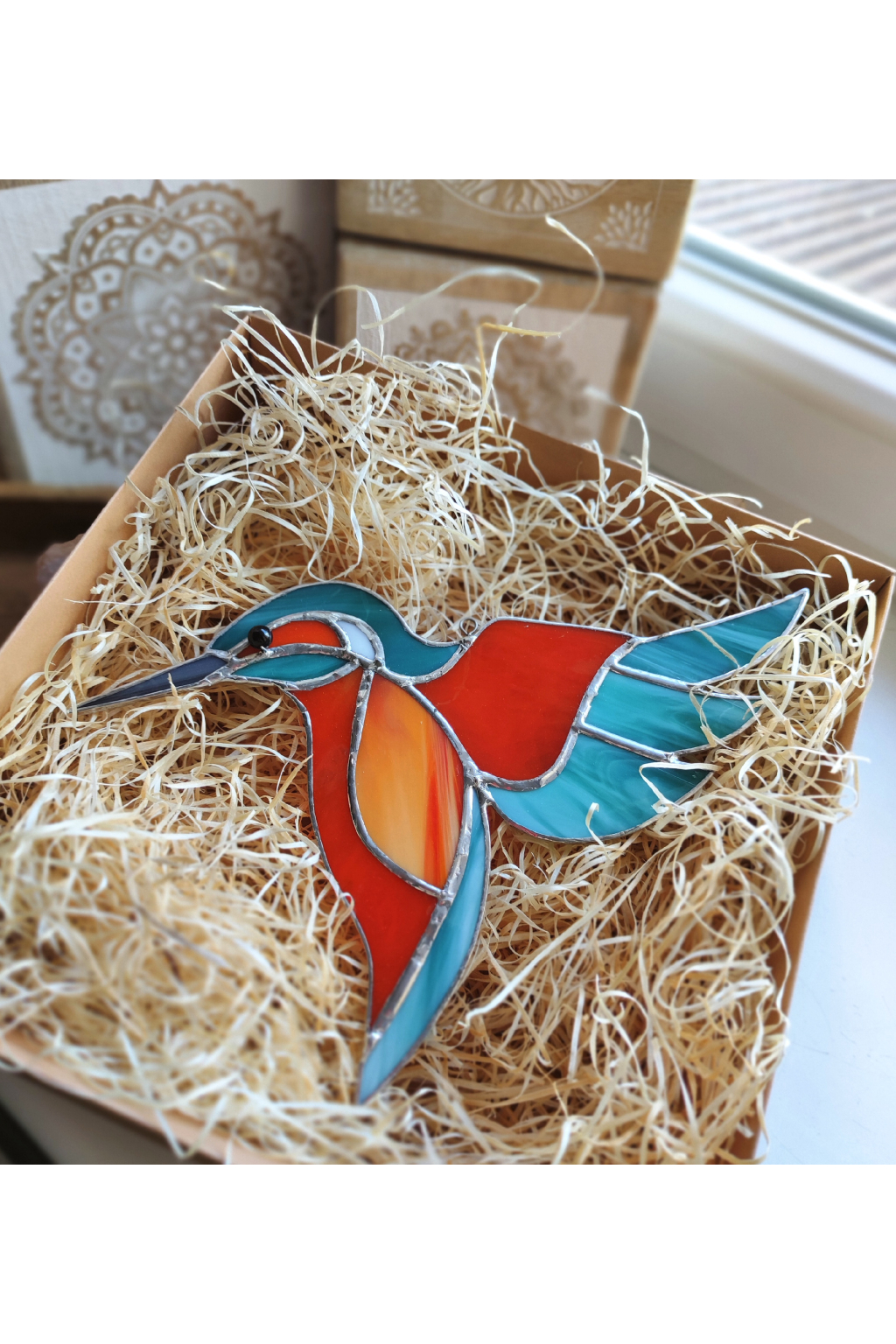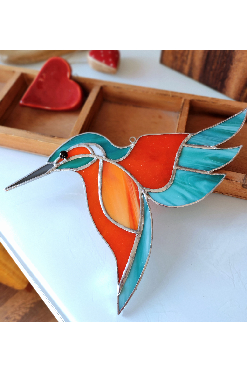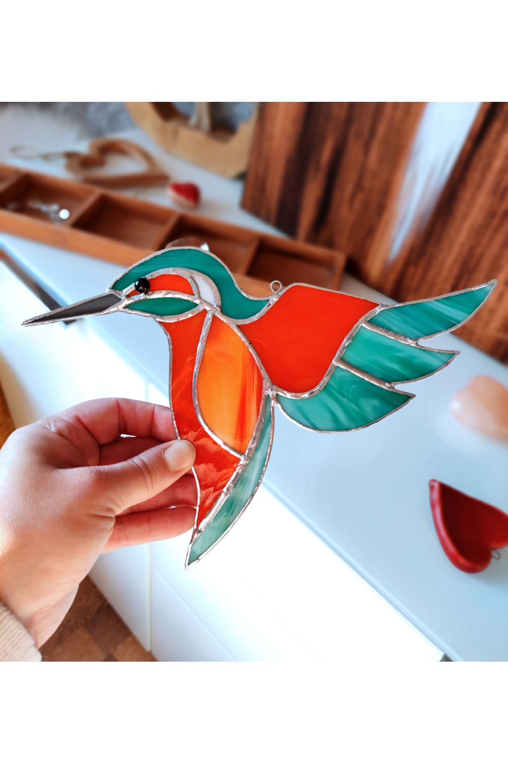 Tento ručně vyráběný Tiffany ledňáček o velikosti 20 cm je symbolem radosti, nových začátků a vnitřního světla. Kombinace tyrkysových, oranžových a červených tónů působí živě, harmonicky a přináší do prostoru energii, která rozjasní každý den.