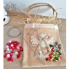 Sada zahrnuje - drátovaného Srdíčka cca 12cm- dostatečné množství korálku k obdrátkovaní celého srdíčka - je jich opravdu hodně, drátek na celé obdrátování, krásnou Jutovou taštičku s vánočním motivem /dle skladových zásob/ vyplněnou dřevitou vlnou.