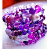 Ametyst, Křišťál, Měsíční kámen, skleněné korálky různých tvarů a velikostí, navlečeno na paměťovém drátku z obecného kovu.