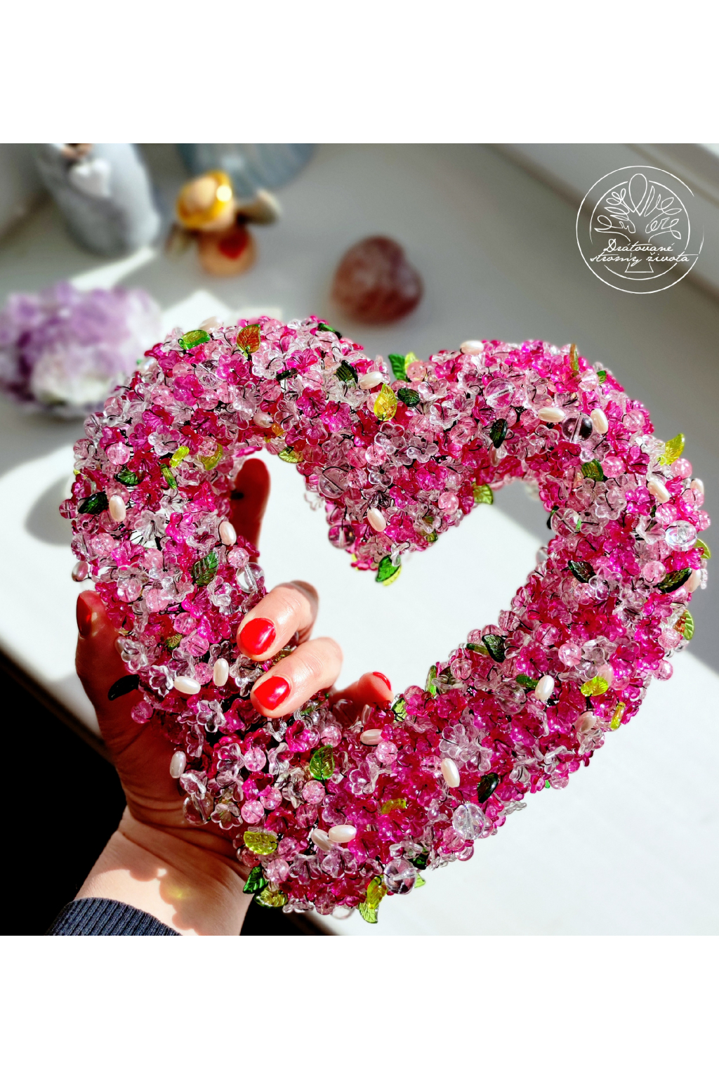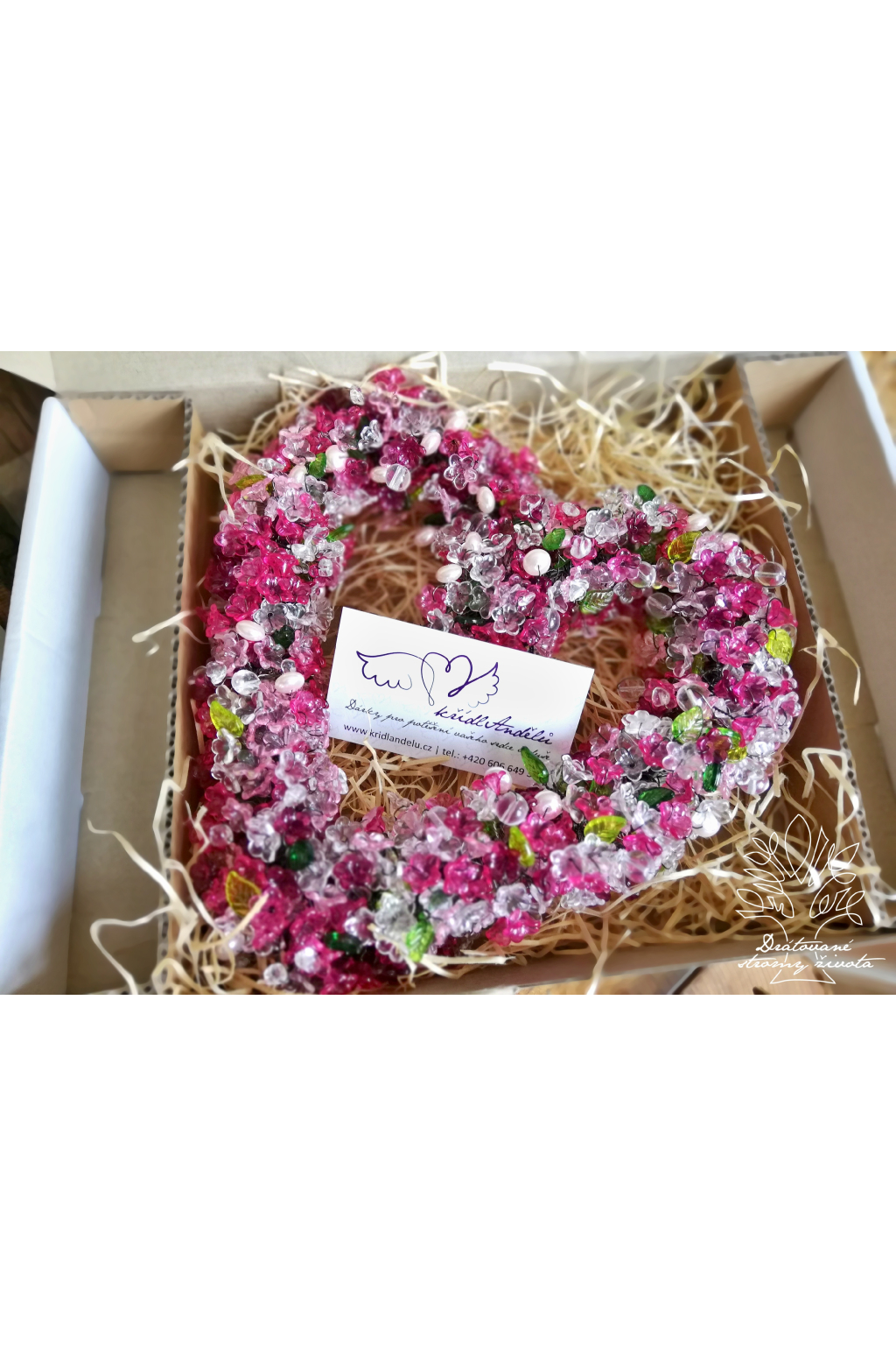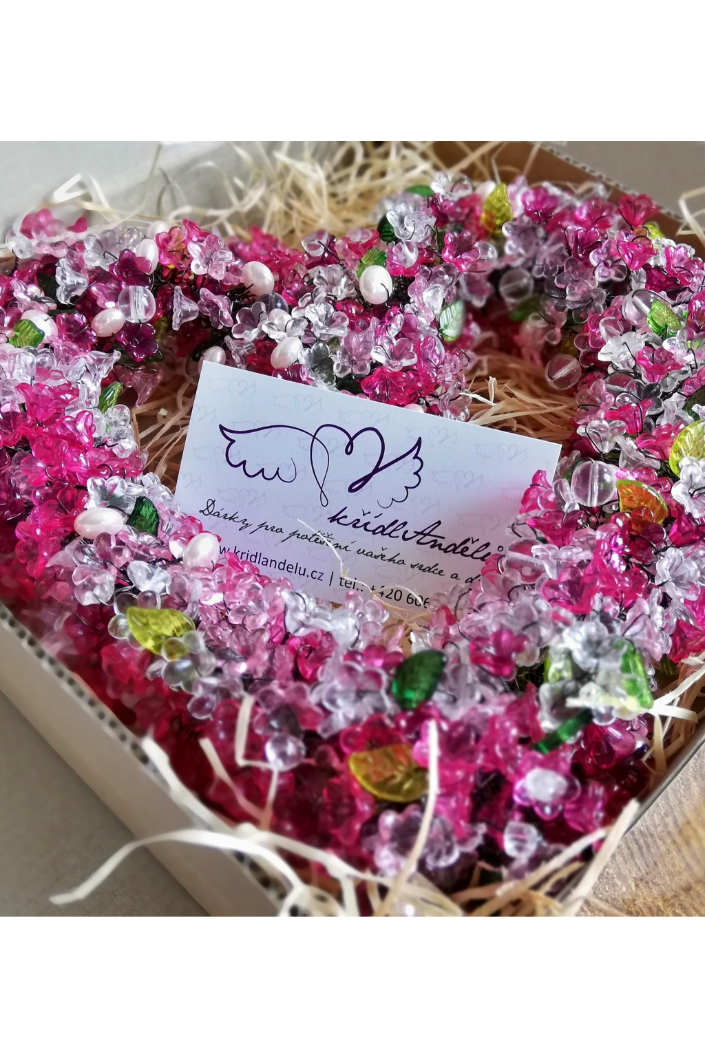Všechny srdíčka jsou vyráběny v naší drátenické dílně, kde každý lístek, kytičku i křišťál vkládáme s láskou a citem. Vyrobeno v ČR.