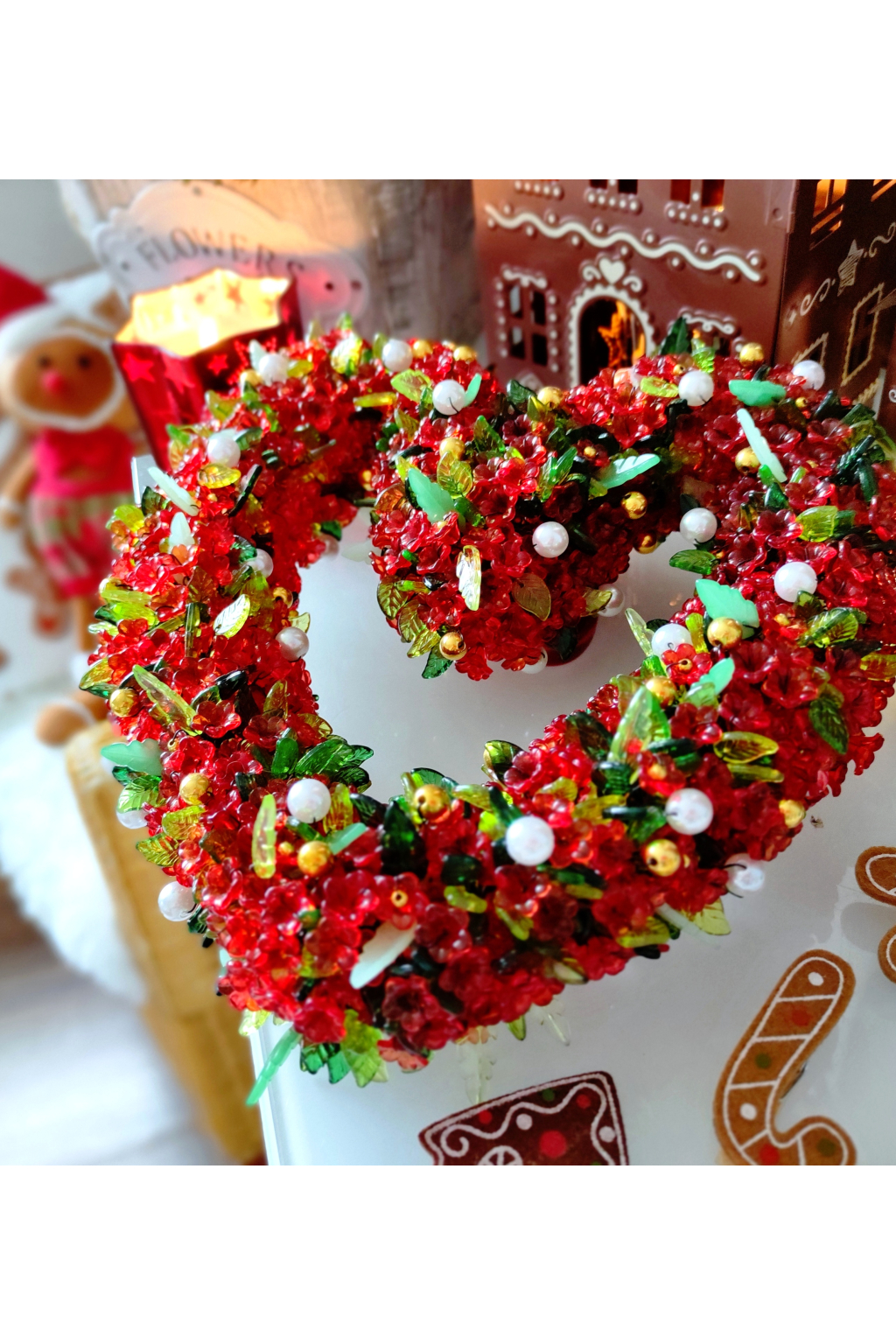 Vánoční drátované srdce s korálky „Vánoční kouzlo“ 23 cm