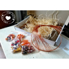 Měděný kruh cca 20cm s navázanými 40 ti drátky Dostatek korálků, lístečků, kytiček a jiných komponentů k navázání na jednotlivé větve
