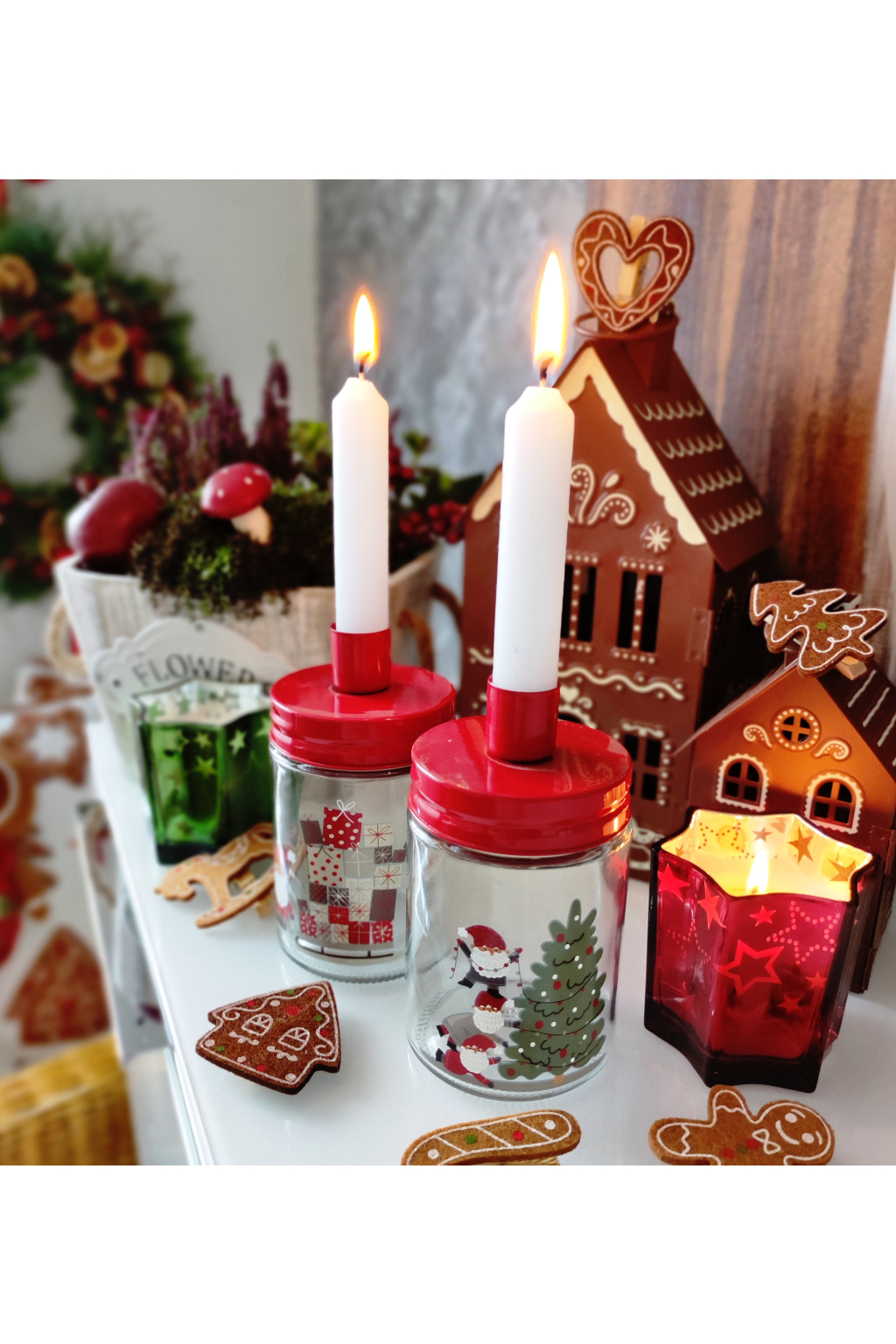 Vánoční skleněné svícny 2ks na delší svíčku pro nejkrásnější požitek z vánoc i navození milé štědrovečerní atmosféry.