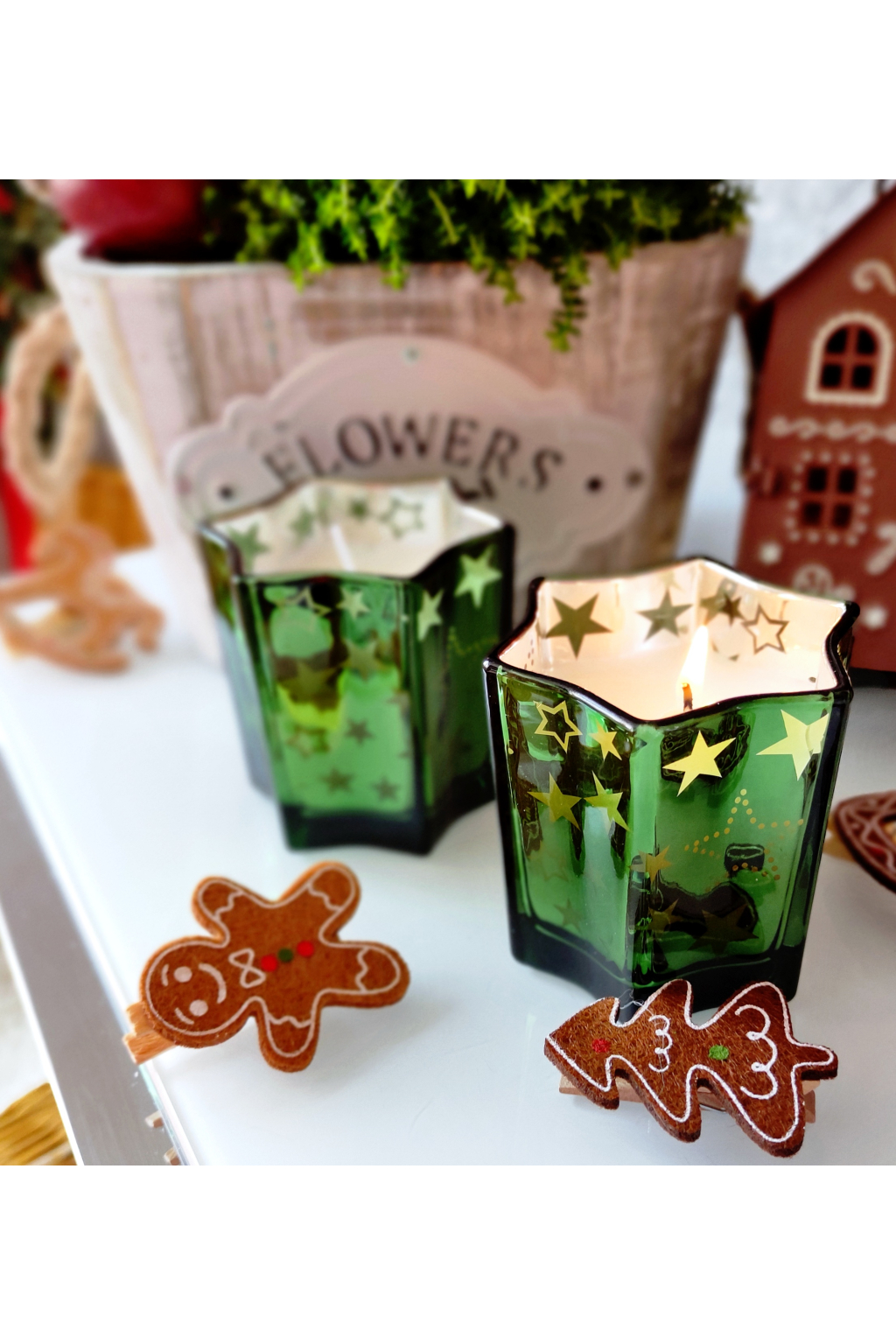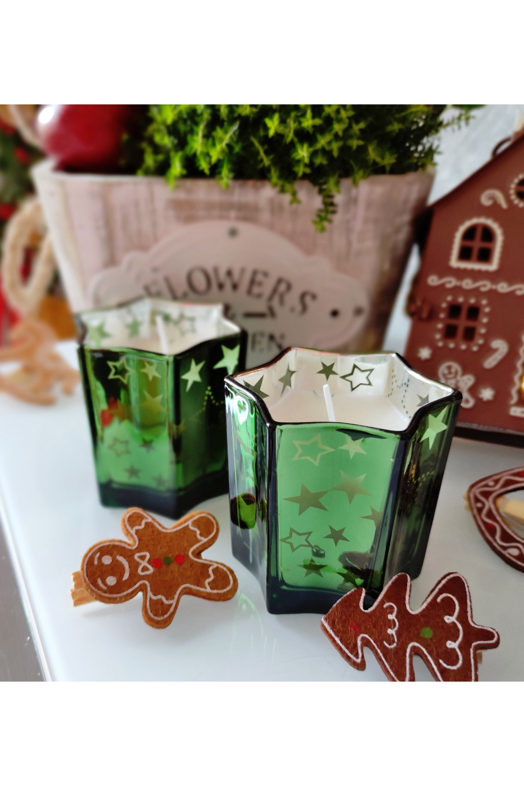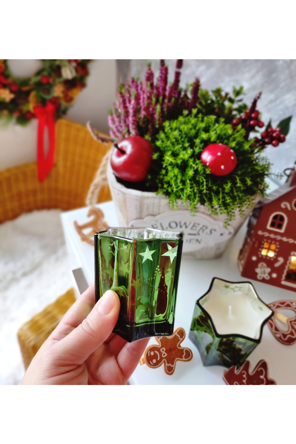 Vánoční svícny se svíčkou Hvězdná obloha 8cm - zelená