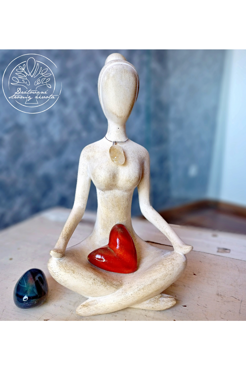 Soška meditující ženy s Křišťálem, Ametystem a Citrínem, který má tato krásná žena jako přívěsek na svém ladném krku. tato soška se dá použít na odkládání šperků, nebo drahých kamínků.