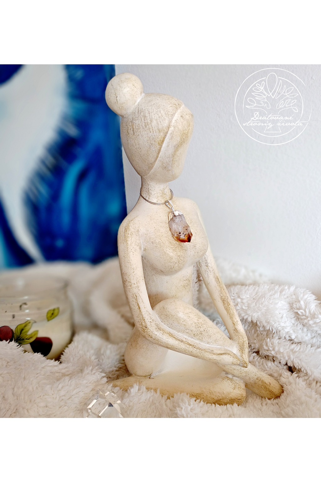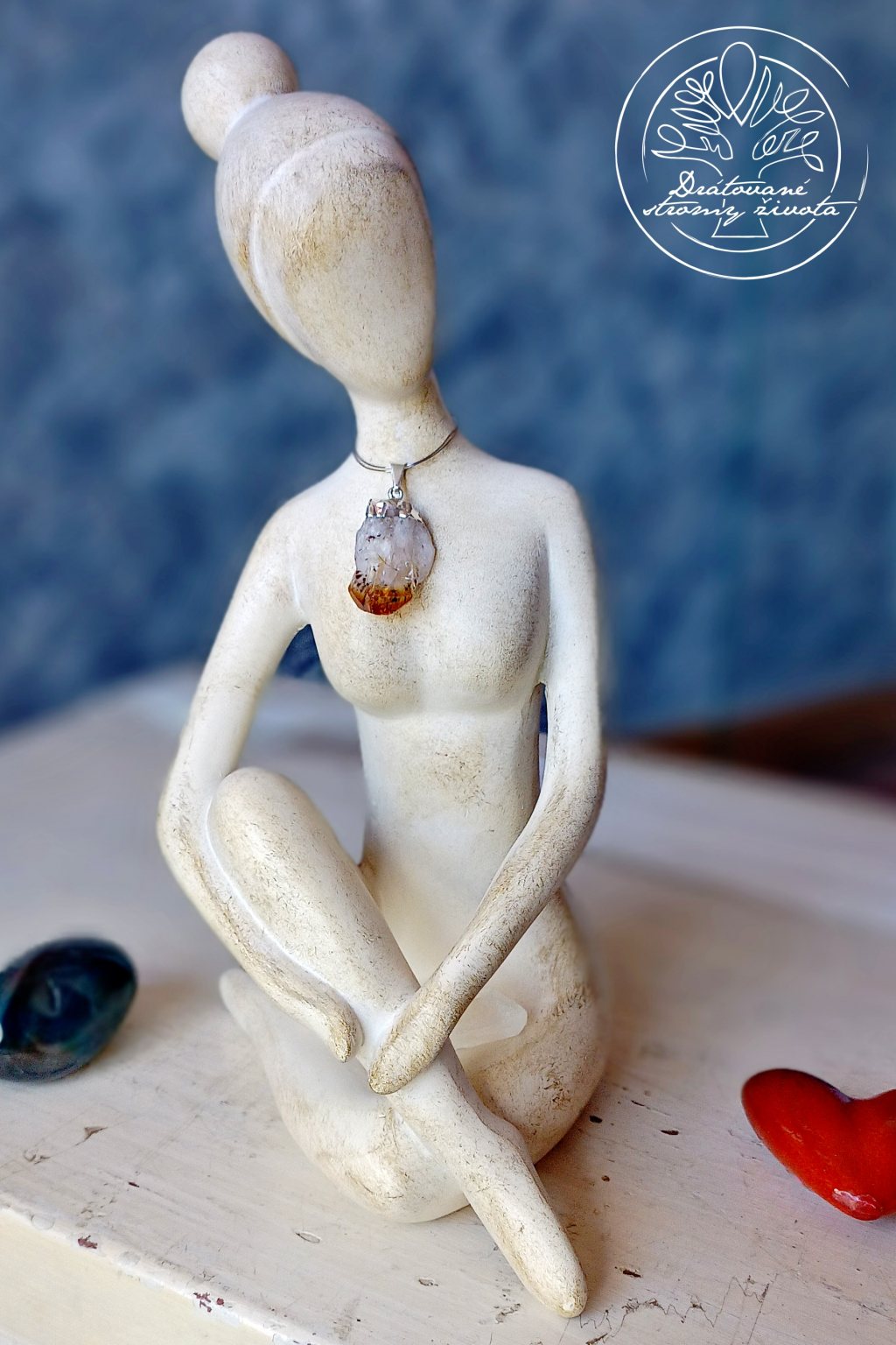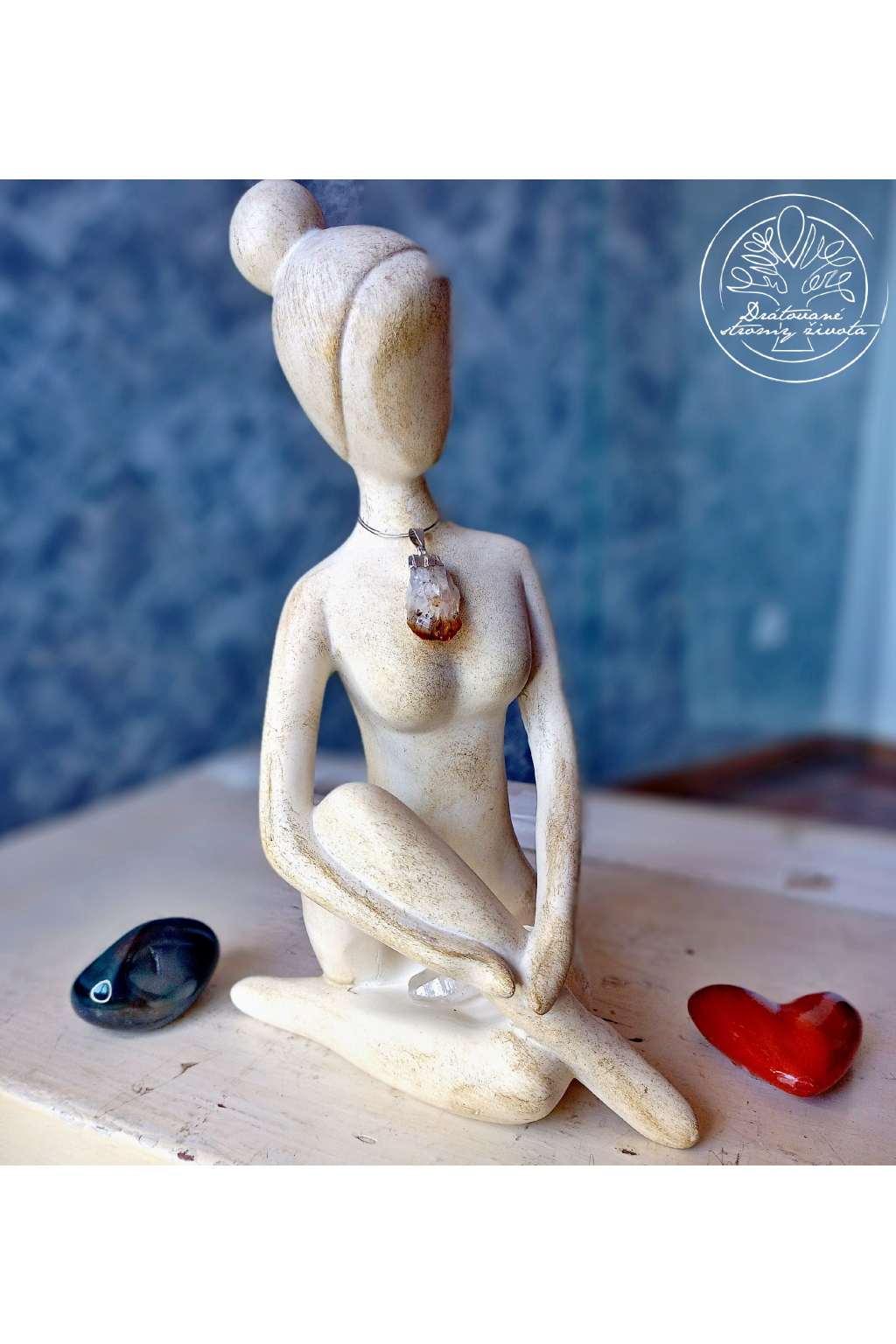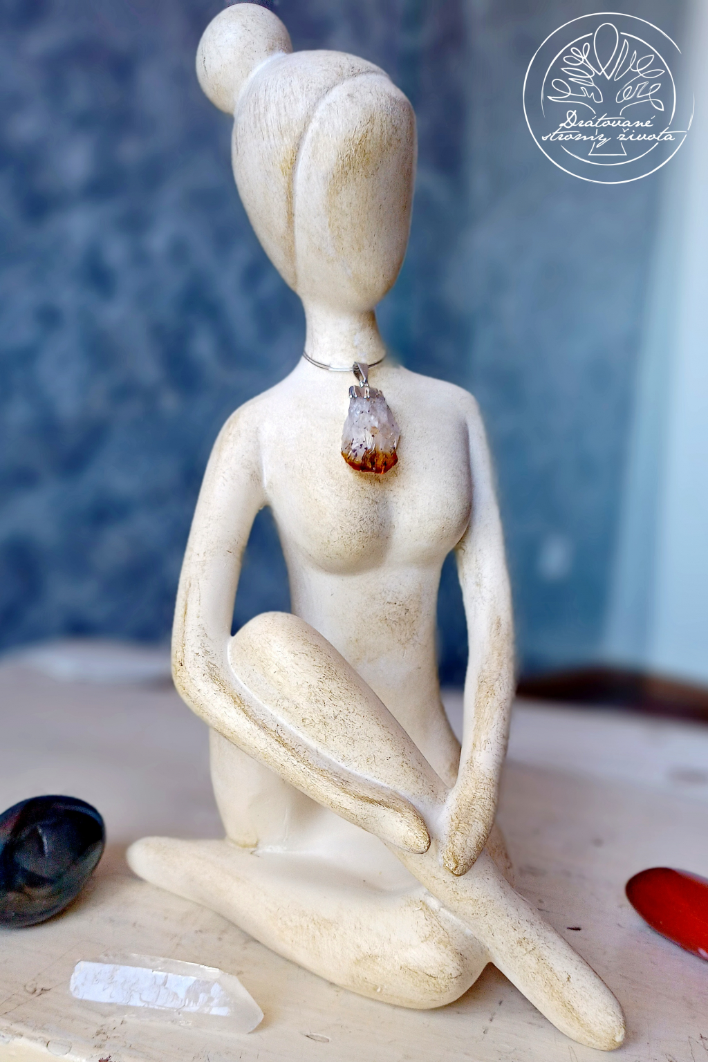 Soška meditující ženy s Citrínem, který má tato krásná žena jako přívěsek na svém ladném krku. tato soška se dá použít na odkládání šperků, nebo drahých kamínků.