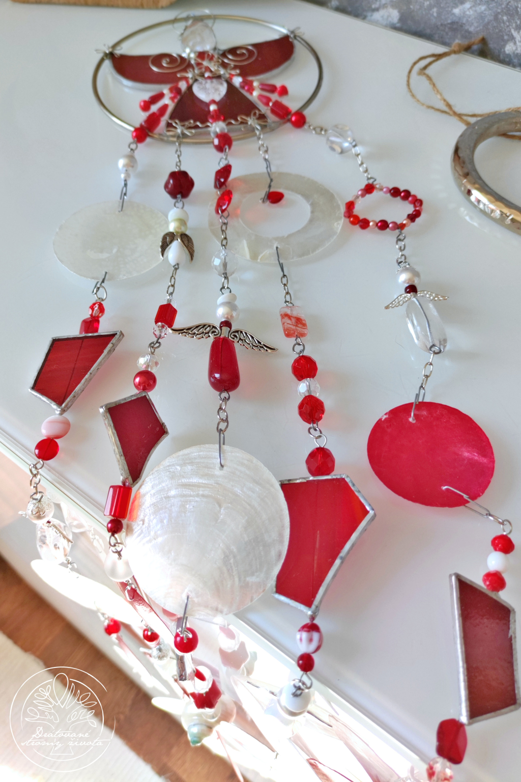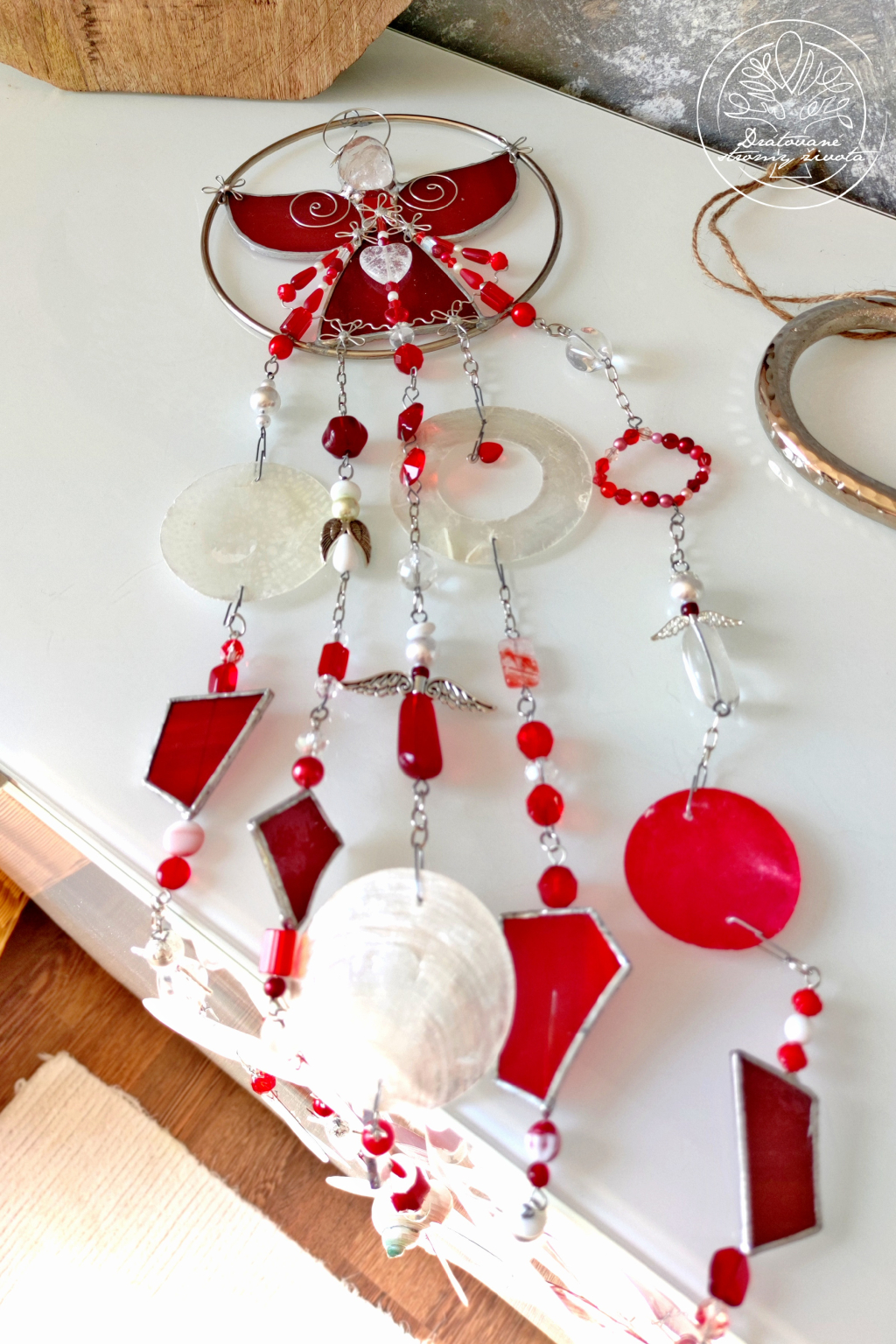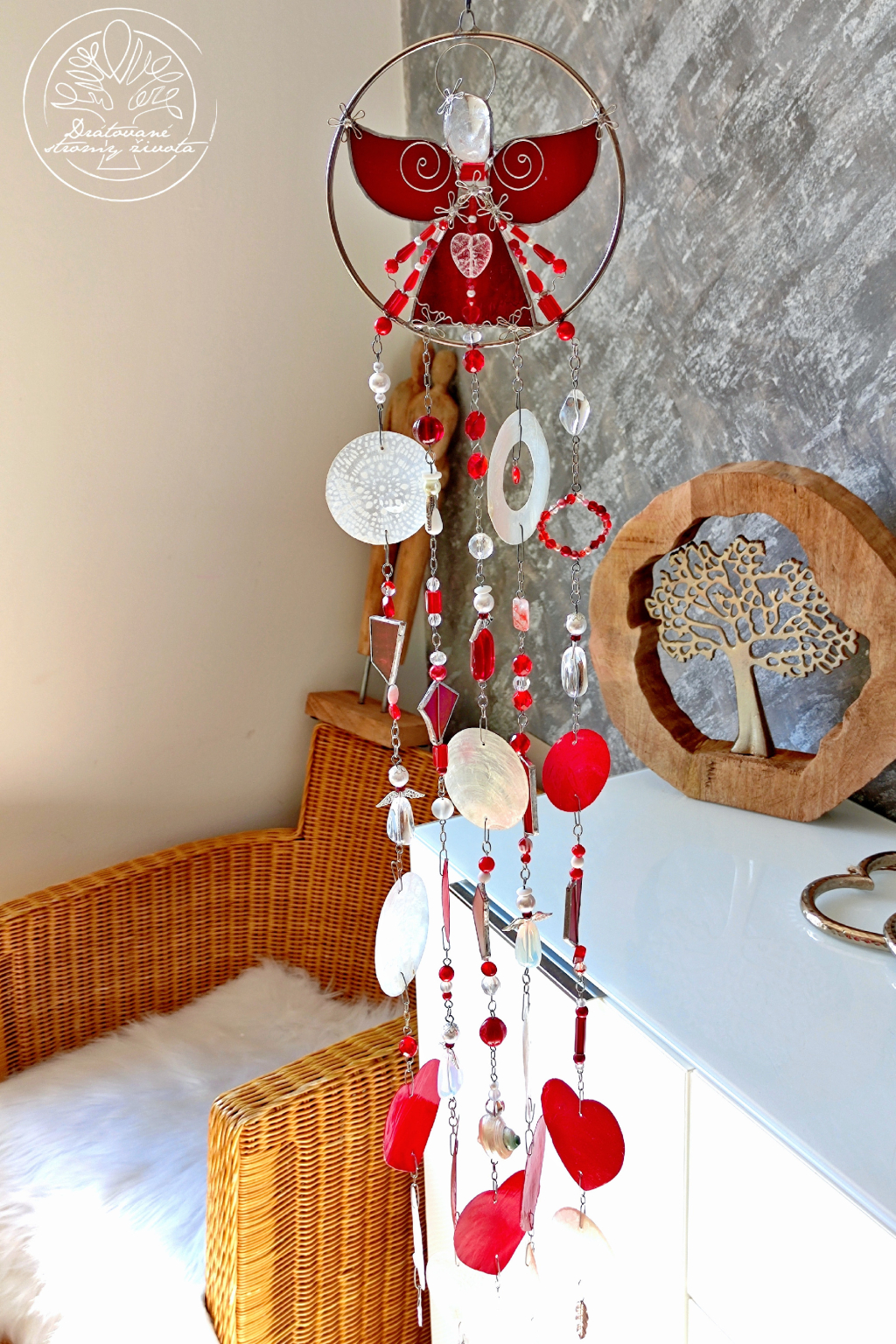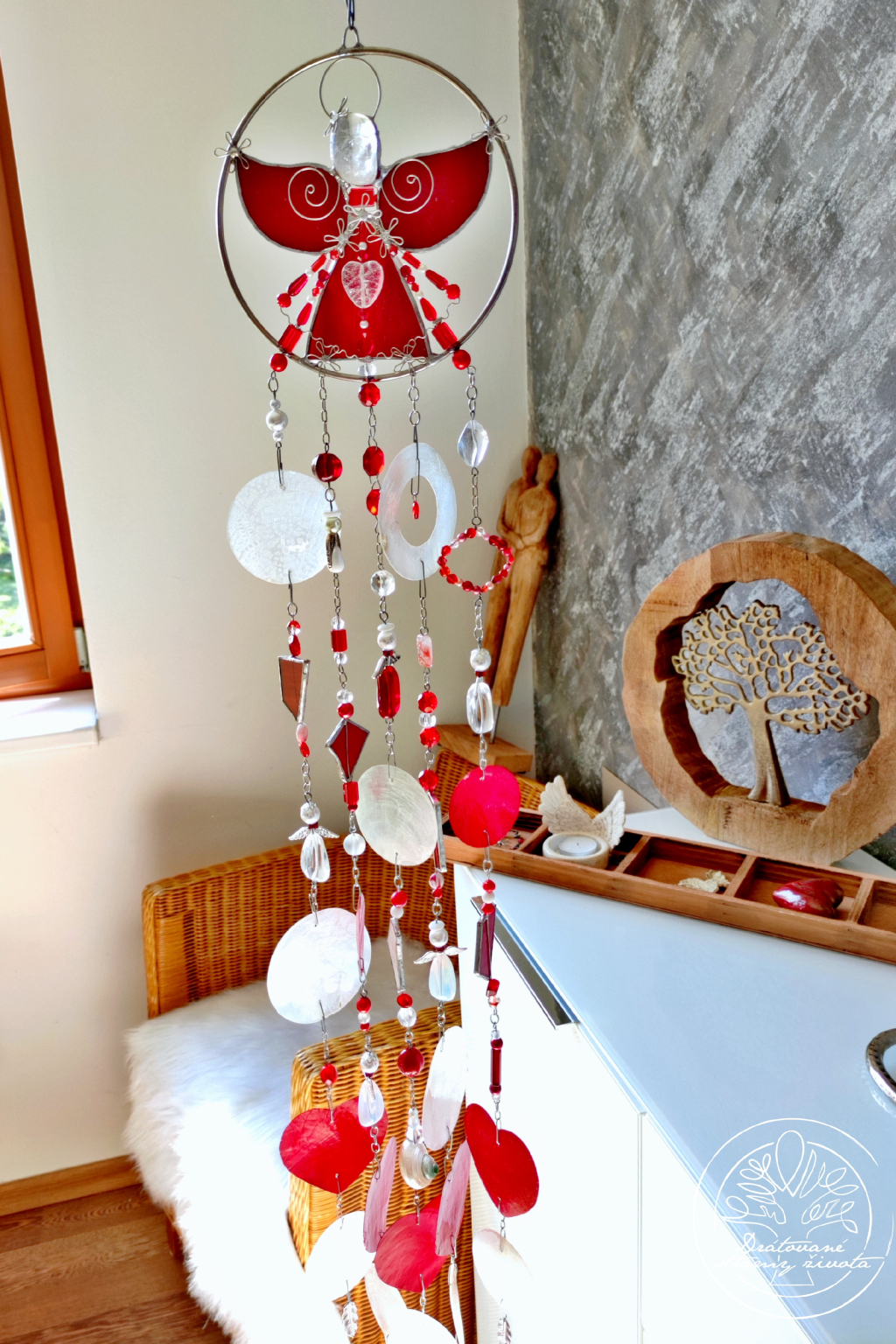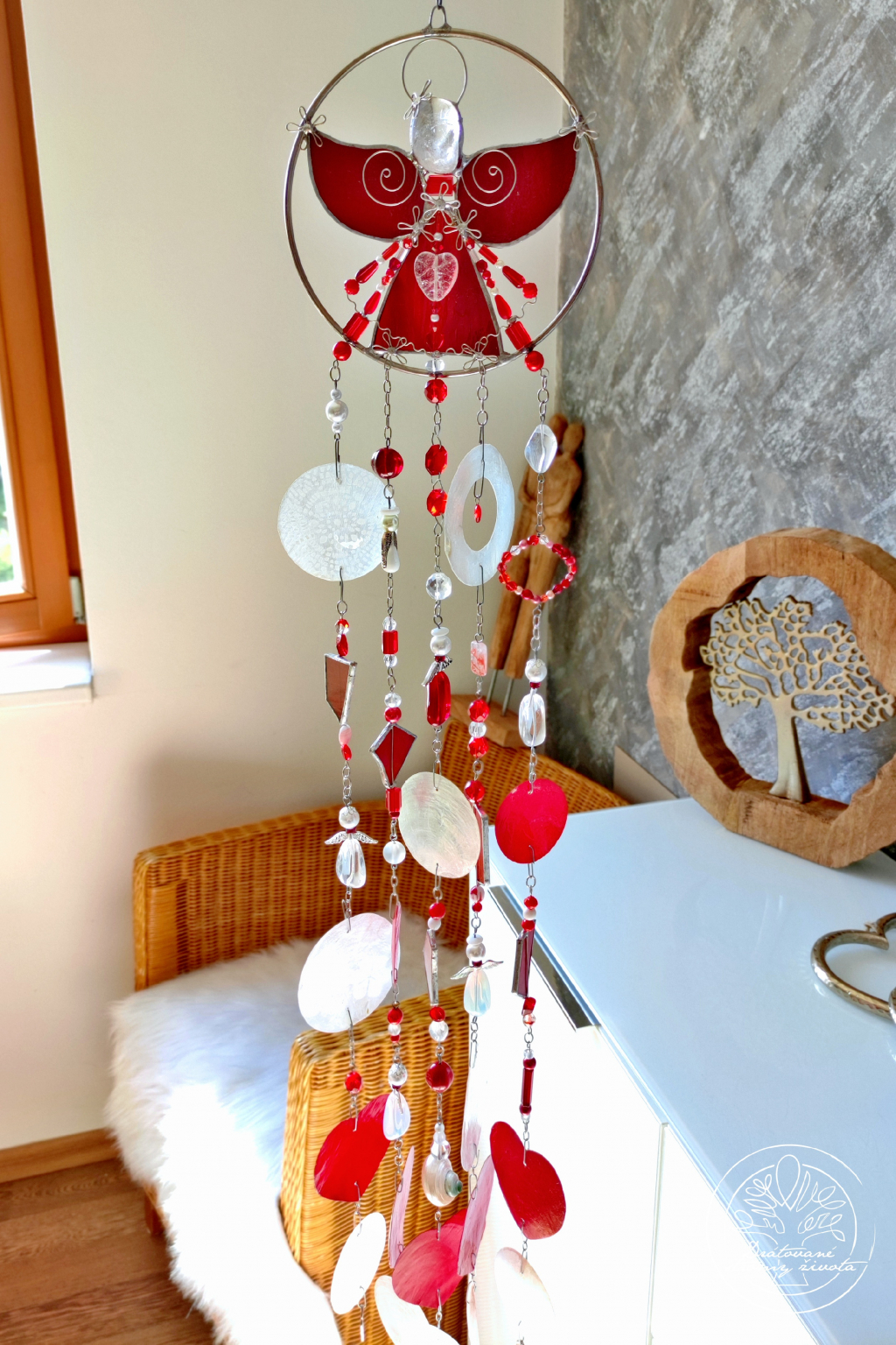 Andělská vitrážová cínovaná zvonkohra je s láskou ručně vyrobené, pracované technikou Tiffany - technika skleněných katedrálních oken.